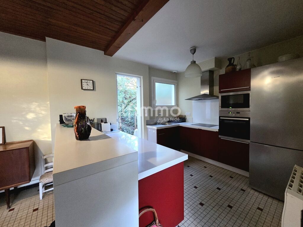 La cuisine équipée, lumineuse, offre un accès direct au jardin.