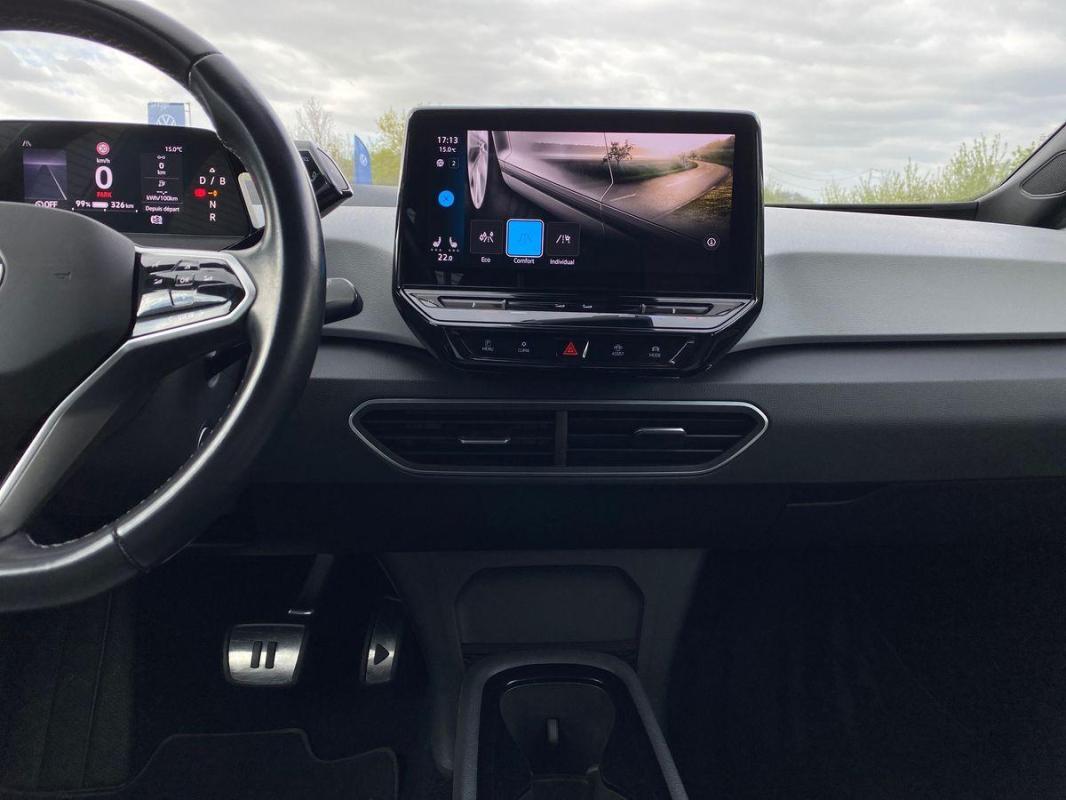 145 ch Pro, électrique, argent, 02/03/2023, Direction électromécanique à assistance variable en fonction de la vitesse, Clignotants confort, Indicateur de température extérieure avec avertisseur de gel, Tapis de sol AV et AR, Alerte de perte de pression des pneus, Boîte à gants verrouillable et éclairée, Avertisseur sonore 1 ton, Eclairage à LED de la plaque d'immatriculation AR, Kit de dépannage : compresseur 12 V et produit d'étanchéité de pneu, Prise 12 V dans le coffre, Activation automatique du signal de détresse en cas de freinage d'urgence, Oeillets d'arrimage ISOFIX, Système de freinage anti multicollision : ce dispositif freine automatiquement le véhicule après un premier choc afin de limiter le risque de multicollision, Volant multifonctions réglable en hauteur et en profondeur, Protection antidémarrage, Détecteur de fatigue, 7 Airbags, Frein de stationnement électromécanique avec fonction d'immobilisation en pente Auto-Hold, Freins à disque à l'AV, Pochette de premiers secours, triangle de sécurité et gilet rétroréfléchissant, Freins à tambours à l' AR, Réception radio numérique DAB+, Car2X, ACC : Régulateur de vitesse adaptatif et prédictif, Turn Assist : Freinage d'urgence d'intersection, Câble de recharge Mode 3 - Type 2 pour borne de recharge, Système d'aide à l'écoconduite - Eco Assistance, Sélecteur de vitesse derrière le volant avec la touche de frein de stationnement électronique, Système de récupération d'énergie au freinage et à la décélération, Réglages de la charge via le système d'infodivertissement ou l'application We Connect ID, E-sound - son spécifique ID, Climatisation stationnaire, Lane Assist - Assistant au maintien dans la voie avec correction de trajectoire, Front Assist - Système de surveillance périmétrique avec fonctions de freinage d'urgence en ville et détection des piétons, Park Pilot : Système d'aide au stationnement AV et AR avec signaux sonores et visualisation de la distance des obstacles sur l'écran, Intervention de freinage automatique lors des manoevres, Carrosserie bicolore - Toit et hayon noir, Jantes en acier 7, 5J x 18'' avec enjoliveurs et pneumatiques 215/55 R18, Vitres AV et AR électriques avec dispositif antipincement, Sign Assist - Système de détection de la signalisation routière, Sièges AV réglables manuellement en hauteur, profondeur et inclinables, Avertissement de distance avec le véhicule précédent, Avertisseur sonore et lumineux pour ceintures non attachées à l'AV et à l'AR, Verrouillage centralisé avec télécommande à fréquence radio, 2 ports USB-C à l'AV, Lampes de lecture tactiles avec réglage manuel de l'intensité lumineuse, Pare-soleils AV avec miroir de courtoisie éclairé, Système de son 4+1 haut-parleurs, Climatiseur 1-Zone "Air Care Climatronic" avec mode recyclage de l'air ambiant, Dispositif électronique de démarrage sans clé "Keyless-Go" - Démarrage possible avec une simple pression sur la pédale de frein, App-Connect sans fil, ID. Display de 5, 3'' : L'ID. Display est un combiné d'instruments numérique doté d'un afficheur couleur TFT à haute résolution. En plus du tachymètre numérique, il est possible d'afficher des informations supplémentaires provenant des systèmes d'aide à la conduite, par la sélection de divers profils d'information., ID.Light - L'ID. Light est un concept d?éclairage intelligent qui vous fournit des informations complémentaires sur l'état du véhicule. Lors de la disponibilité de marche et pendant la conduite, des informations complémentaires sur la situation de conduite actuelle sont fournies par l'ID. Light, Ecran central tactile de 10'' personnalisable, Commande Vocale intuitive -"Bonjour ID." - Certaines fonctions peuvent être exécutées grâce à la commande vocale, Système d'appel d'urgence - eCal, Appui-tête réglables en hauteur sur les sièges AV et AR, Gestion des paramètres de confidentialité liés à la eSIM et à We Connect ID., Services connectés "We Connect ID." 36 mois, Phares LED et feux AR à LED, Réglage des phares tactile, Galerie porte-bagages, Accoudoir pour les sièges AV, Peinture Unie Gris Lunaire/Toit Noir, Portes AR avec sécurité enfants, Ceintures de sécurité automatiques AV trois points à enrouleur avec prétensionneurs et AR trois points à enrouleur, Correcteur électronique de trajectoire ESP, Amplificateur de freinage d'urgence AFU, Servofrein électromécanique eBKV, Freinage mixte BKU, système d'antiblocage des roues ABS, blocage électronique de différentiel EDS, répartiteur lectronique de freinage EBV, antipatinage électronique ASR, régulateur électronique de couple MSR, assistance au contrebraquage, Programme électronique de stabilisation ESC, Système agissant comme un différentiel autobloquant électronique permettant une meilleure motricité en courbe grâce à une répartition optimale de la puissance et du couple sur les roues AR XDS, Système de refroidissement liquide, Chargeur embarqué pour prise Type 2 : 11 kW AC, Système d'appel en cas de panne B-Call, Intérieur Style avec habillage et volant Noir et avec sellerie en ArtVelours et similicuir, tableau de bord personnalisable, revêtement du tableau de bord et des portes soft-touch, éclairage d?ambiance personnalisable, pédalier en acier inoxydable avec symboles Play et Pause, banquette AR 3 places rabattable avec trappe à skis, sièges AV réglables en hauteur, Pack Infotainment, Pack Visibilité, Pack Confort, Climatiseur 1-Zone "Climatronic", Volant multifonction à réglage mécanique en hauteur et en longueur, Câble de recharge Mode 2 - Type 2 pour prise domestique, Peinture Métallisée Gris Argent/Toit Noir
