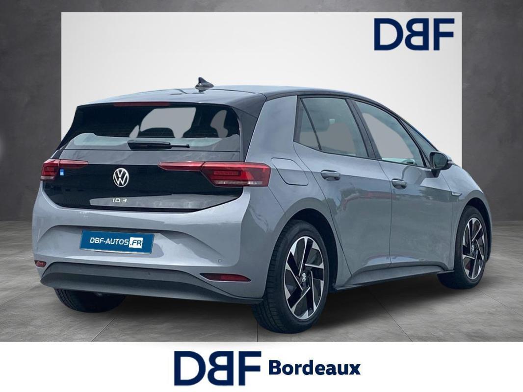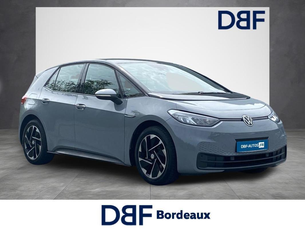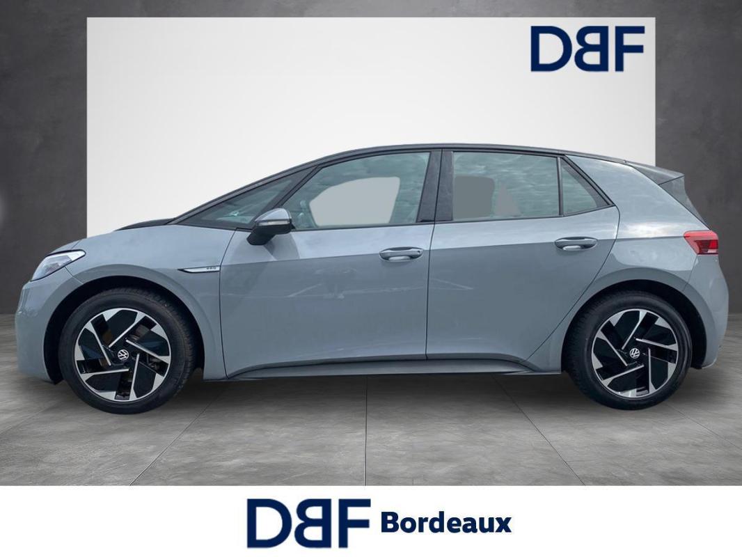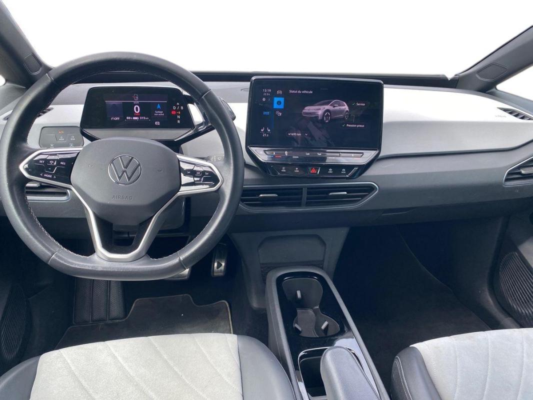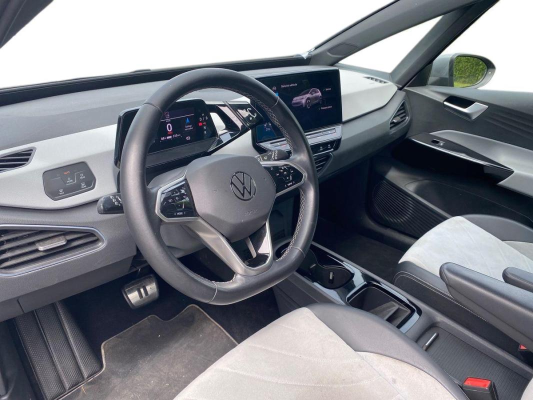 204 ch Pro Performance, électrique, gris clair, 26/01/2023, Direction électromécanique à assistance variable en fonction de la vitesse, Clignotants confort, Indicateur de température extérieure avec avertisseur de gel, Tapis de sol AV et AR, Alerte de perte de pression des pneus, Boîte à gants verrouillable et éclairée, Avertisseur sonore 1 ton, Eclairage à LED de la plaque d'immatriculation AR, Kit de dépannage : compresseur 12 V et produit d'étanchéité de pneu, Prise 12 V dans le coffre, Activation automatique du signal de détresse en cas de freinage d'urgence, Oeillets d'arrimage ISOFIX, Système de freinage anti multicollision : ce dispositif freine automatiquement le véhicule après un premier choc afin de limiter le risque de multicollision, Volant multifonctions réglable en hauteur et en profondeur, Protection antidémarrage, Détecteur de fatigue, 7 Airbags, Frein de stationnement électromécanique avec fonction d'immobilisation en pente Auto-Hold, Freins à disque à l'AV, Pochette de premiers secours, triangle de sécurité et gilet rétroréfléchissant, Freins à tambours à l' AR, Réception radio numérique DAB+, Car2X, ACC : Régulateur de vitesse adaptatif et prédictif, Turn Assist : Freinage d'urgence d'intersection, Câble de recharge Mode 3 - Type 2 pour borne de recharge, Système d'aide à l'écoconduite - Eco Assistance, Sélecteur de vitesse derrière le volant avec la touche de frein de stationnement électronique, Système de récupération d'énergie au freinage et à la décélération, Réglages de la charge via le système d'infodivertissement ou l'application We Connect ID, E-sound - son spécifique ID, Climatisation stationnaire, Lane Assist - Assistant au maintien dans la voie avec correction de trajectoire, Front Assist - Système de surveillance périmétrique avec fonctions de freinage d'urgence en ville et détection des piétons, Park Pilot : Système d'aide au stationnement AV et AR avec signaux sonores et visualisation de la distance des obstacles sur l'écran, Intervention de freinage automatique lors des manoevres, Carrosserie bicolore - Toit et hayon noir, Jantes en acier 7, 5J x 18'' avec enjoliveurs et pneumatiques 215/55 R18, Vitres AV et AR électriques avec dispositif antipincement, Sign Assist - Système de détection de la signalisation routière, Sièges AV réglables manuellement en hauteur, profondeur et inclinables, Avertissement de distance avec le véhicule précédent, Avertisseur sonore et lumineux pour ceintures non attachées à l'AV et à l'AR, Verrouillage centralisé avec télécommande à fréquence radio, 2 ports USB-C à l'AV, Lampes de lecture tactiles avec réglage manuel de l'intensité lumineuse, Pare-soleils AV avec miroir de courtoisie éclairé, Système de son 4+1 haut-parleurs, Climatiseur 1-Zone "Air Care Climatronic" avec mode recyclage de l'air ambiant, Dispositif électronique de démarrage sans clé "Keyless-Go" - Démarrage possible avec une simple pression sur la pédale de frein, App-Connect sans fil, ID. Display de 5, 3'' : L'ID. Display est un combiné d'instruments numérique doté d'un afficheur couleur TFT à haute résolution. En plus du tachymètre numérique, il est possible d'afficher des informations supplémentaires provenant des systèmes d'aide à la conduite, par la sélection de divers profils d'information., ID.Light - L'ID. Light est un concept d?éclairage intelligent qui vous fournit des informations complémentaires sur l'état du véhicule. Lors de la disponibilité de marche et pendant la conduite, des informations complémentaires sur la situation de conduite actuelle sont fournies par l'ID. Light, Ecran central tactile de 10'' personnalisable, Commande Vocale intuitive -"Bonjour ID." - Certaines fonctions peuvent être exécutées grâce à la commande vocale, Système d'appel d'urgence - eCal, Appui-tête réglables en hauteur sur les sièges AV et AR, Gestion des paramètres de confidentialité liés à la eSIM et à We Connect ID., Services connectés "We Connect ID." 36 mois, Phares LED et feux AR à LED, Réglage des phares tactile, Galerie porte-bagages, Accoudoir pour les sièges AV, Peinture Unie Gris Lunaire/Toit Noir, Portes AR avec sécurité enfants, Ceintures de sécurité automatiques AV trois points à enrouleur avec prétensionneurs et AR trois points à enrouleur, Correcteur électronique de trajectoire ESP, Amplificateur de freinage d'urgence AFU, Servofrein électromécanique eBKV, Freinage mixte BKU, système d'antiblocage des roues ABS, blocage électronique de différentiel EDS, répartiteur lectronique de freinage EBV, antipatinage électronique ASR, régulateur électronique de couple MSR, assistance au contrebraquage, Programme électronique de stabilisation ESC, Système agissant comme un différentiel autobloquant électronique permettant une meilleure motricité en courbe grâce à une répartition optimale de la puissance et du couple sur les roues AR XDS, Système de refroidissement liquide, Chargeur embarqué pour prise Type 2 : 11 kW AC, Système d'appel en cas de panne B-Call, Intérieur Style avec habillage et volant Noir et avec sellerie en ArtVelours et similicuir, tableau de bord personnalisable, revêtement du tableau de bord et des portes soft-touch, éclairage d?ambiance personnalisable, pédalier en acier inoxydable avec symboles Play et Pause, banquette AR 3 places rabattable avec trappe à skis, sièges AV réglables en hauteur, Pack Infotainment, Pack Visibilité, Pack Confort, Climatiseur 1-Zone "Climatronic", Volant multifonction à réglage mécanique en hauteur et en longueur, Câble de recharge Mode 2 - Type 2 pour prise domestique, Jantes 18'' "East Derry" bicolore Argent Pneumatiques 215/55 R18