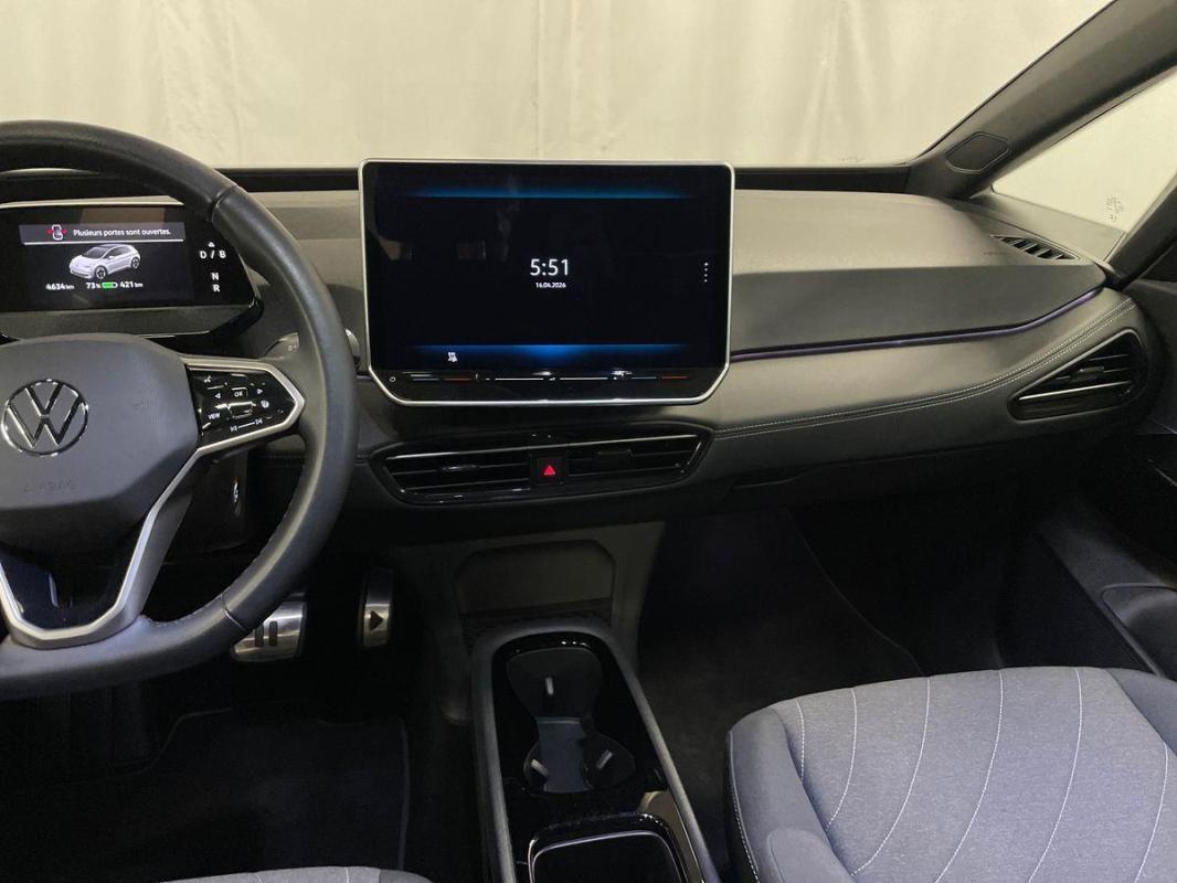 204 ch Pro S Life Max, électrique, vert, 24/07/2025, Direction électromécanique à assistance variable en fonction de la vitesse, Indicateur de température extérieure avec avertisseur de gel, Alerte de perte de pression des pneus, Tapis de sol AV et AR, Avertisseur sonore 1 ton, Capteur de pluie avec essuie glace automatique, Eclairage à LED de la plaque d'immatriculation AR, Kit de dépannage : compresseur 12 V et produit d'étanchéité de pneu, Prise 12 V dans le coffre, Système de récupération de l'énergie en décélération, Activation automatique du signal de détresse en cas de freinage d'urgence, Oeillets d'arrimage ISOFIX, Protection antidémarrage, Interface téléphone Bluetooth, Régulation des feux de route "Light Assist", Rétroviseur intérieur à réglage jour/nuit automatique, Park Pilot - Aide au stationnement AV et AR, Turn Assist : Freinage d'urgence d'intersection, Réception de radio numérique, Câble de recharge Mode 3 - Type 2 pour borne de recharge, Système d'aide à l'écoconduite - Eco Assistance, Lane Assist - Assistant au maintien dans la voie avec correction de trajectoire, Front Assist - Système de surveillance périmétrique avec fonctions de freinage d'urgence en ville et détection des piétons, Intervention de freinage automatique lors des manoevres, Carrosserie bicolore - Toit et hayon noir, Vitres AV et AR électriques avec dispositif antipincement, Sign Assist - Système de détection de la signalisation routière, Avertissement de distance avec le véhicule précédent, 7 Airbags : Airbags frontaux AV conducteur et passager, Airbags latéraux à l'AV, airbags interactif à l'AV et avec airbags de tête à l'AV et à l'AR, Airbag central situé sur le côté droit du siège conducteur, permet la protection des chocs entre les occupants des sièges AV en cas de collision latérale ou de retournement, Accoudoirs pour les sièges AV, Pédalier en acier inoxydable avec symboles "Play & Pause", App-Connect sans fil, ID. Display de 5, 3'' : L'ID. Display est un combiné d'instruments numérique doté d'un afficheur couleur TFT à haute résolution. En plus du tachymètre numérique, il est possible d'afficher des informations supplémentaires provenant des systèmes d'aide à la conduite, par la sélection de divers profils d'information., Commande Vocale intuitive -"Bonjour ID." - Certaines fonctions peuvent être exécutées grâce à la commande vocale, Eclairage de bienvenue, 2 port USB-C ? l'AV, Ceintures de sécurité automatiques AV trois points à enrouleur avec prétensionneurs, Capacité de batterie nette - 79 kWh, Réglage des phares tactile, Système de Freinage anti-multi collision Ce dispositif freine automatiquement le véhicule après un premier choc afin de limiter le risque de multicollision, Freins à disques à l'AV et freins à tambours à AR, Système de refroidissement liquide, Buses à dégivrage automatique à l'AV, Console centrale rétroéclairée avec rangement, volet occultant, 2 porte-gobelets, Sélecteur de vitesse situé à droite derrière le volant avec frein de stationnement électronique, Banquette AR 3 places rabattable avec trappe à skis, Système d'appel d'urgence - eCall Appel d?urgence manuel ou automatique, Avertisseur sonore et lumineux pour ceintures non attachées AV et AR, Système de démarrage sans clé Keyless-Go Démarrage possible avec une simple pression sur la pédale de frein, Revêtement du tableau de bord et des portes tissu "Taia" composé de matériaux durables, Pack Extérieur Projecteurs IQ. Light Matrix LED avec commutation automatique des feux de route, éclairage de mauvais temps et fonction de bienvenue, Régulation dynamique des feux de route "Dynamic Light Assist, Bande lumineuse entre les projecteurs et le logo, Feux AR à LED avec clignotants séquentiels, Vitres AR sur-teintées, Sellerie Tissu Gris Taia, Siège AV réglages en hauteur, Capacité de batterie nette - 77 kWh, Capacité de puissance maximale du chargeur embarqué pour prise Type 2 : 11 kW AC, Projecteurs LED et feux AR à LED, Eclairage des poignées de portes avec éclairage de bienvenue 'Welcome Light, Clignotants confort : clignotements, Volant multifonction à réglage mécanique en hauteur et en longueur, Verrouillage centralisé avec télécommande à fréquence radio, Rétroviseurs extérieurs réglables, rabattables et dégivrants électriquement avec abaissement du rétroviseur passager, Car2X La fonction Car2X utilise les informations des autres véhicules présents dans un périmètre pouvant s?étendre jusqu?à 800 mètres, ainsi que les signaux des infrastructures de transport pour avertir le conducteur et transmettre ces avertissements à d?autres véhicules équipés de la fonction Car2X., E-sound - son spécifique ID L'e-Sound est un bruit électronique de moteur signalant l'approche de véhicules électriques aux autres usagers de la route. Plus le véhicule roule vite, plus le volume sonore de l'e-Sound diminue lentement., Préparation pour services connectés "VW Connect" activables via la boutique en ligne du véhicule ou via l'espace MyVolkswagen, Allumage automatique des feux, capteurs de pluie avec essuie-glace automatique, Climatisation stationnaire permet de réfrigérer, de ventiler ou de chauffer l?habitacle du véhicule à l?arrêt. Elle permet également de dégivrer le pare-brise, de le désembuer et de le débarrasser d?une fine couche de neige en hiver. La climatisation stationnaire est alimentée par la prise de courant ou par la batterie haute tension du véhicule., Gestion des paramètres de confidentialité liés à la eSIM et à VW Connect, ACC: Régulateur de vitesse adaptatif avec limiteur de vitesse adapte la vitesse en fonction des limitations de vitesse détectées, Correcteur électronique de trajectoire ESP, Amplificateur de freinage d'urgence AFU, Servofrein électromécanique eBKV, Freinage mixte BKU, système d?antiblocage des roues ABS, blocage électronique de di