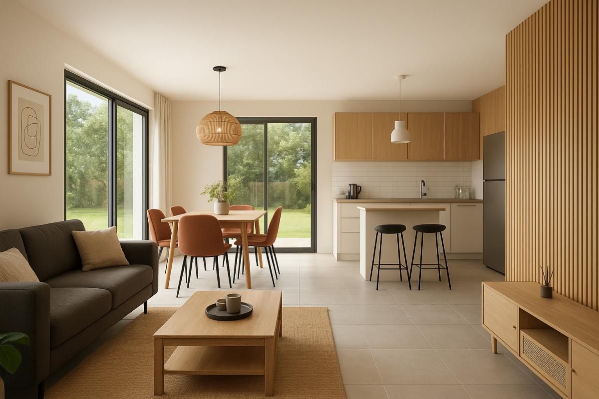 Un bel espace de vie lumineux de plus de 35 m² avec cuisine ouverte, idéal pour partager des moments conviviaux.