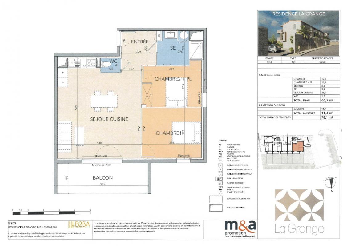 Ce logement se compose d'une spacieuse pièce à vivre de 31,7 m² avec cuisine aménagée et semi-équipée, ouvrant sur une agréable terrasse de 11,4 m².
