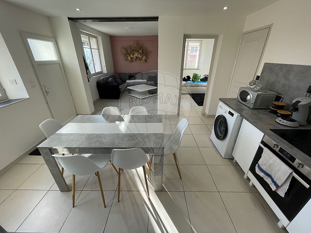 A l'étage, on retrouve un salon, une cuisine ouverte, 3 chambres, une salle d'eau et un wc.