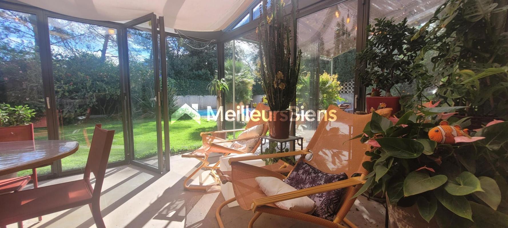 véranda, jardin, piscine chauffée, spa, terrain de pétanque.
