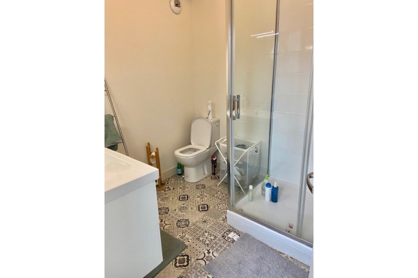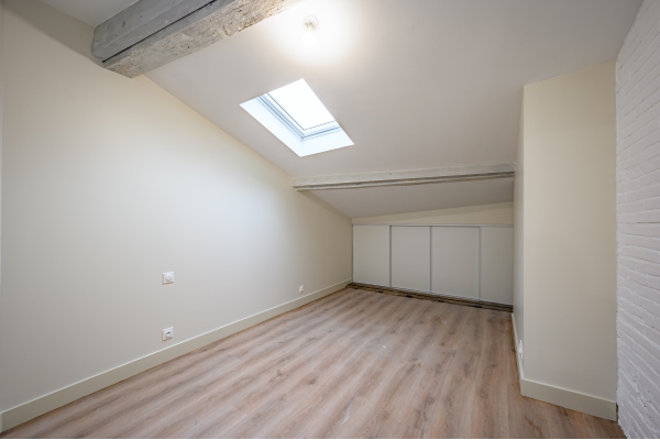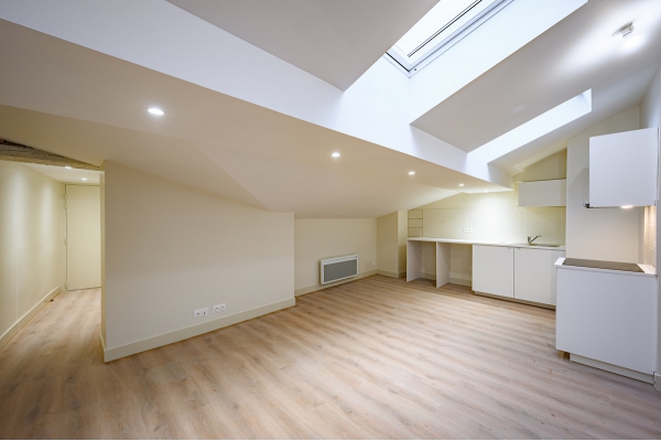 D'un séjour- d'une cuisine équipée de plaques vitrocéramiques, d'une hotte, de meubles hauts et bas - de 2 chambres - d'une salle d'eau avec WC.