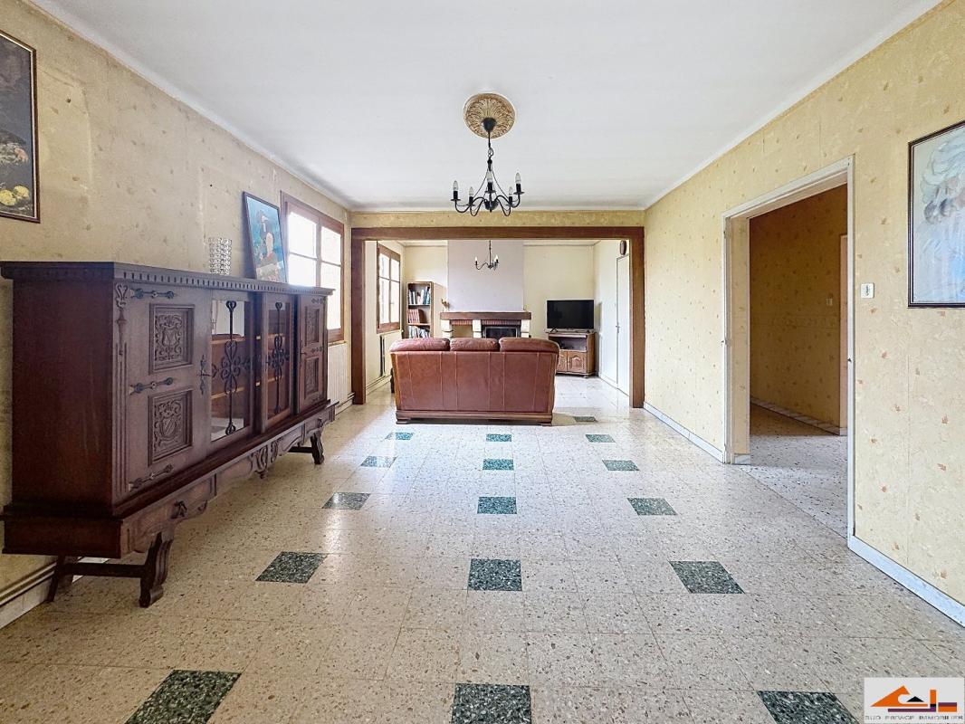 Un hall d'entrée, une cuisine aménagée et équipée,un cellier attenant, un salon-séjour avec cheminée ouvrant sur une véranda de 24 m2, trois chambres, une salle d'eau et un WC séparé.