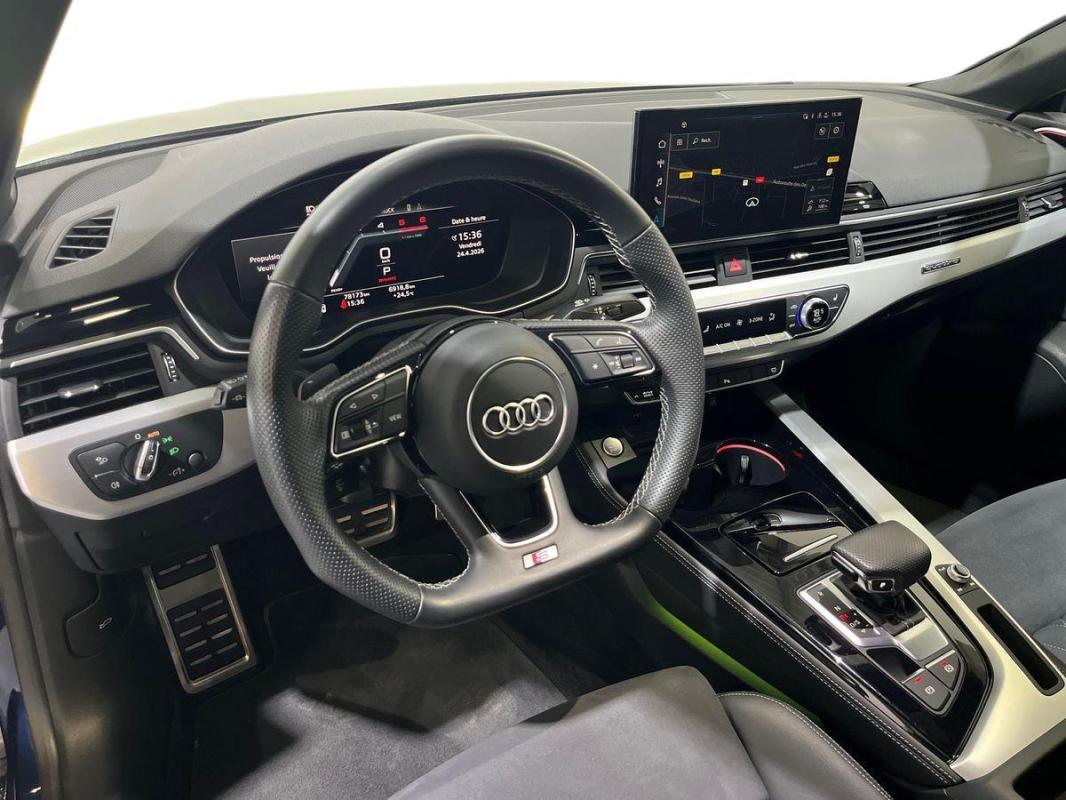 40 TDI 204 S tronic 7 Quattro S Edition, diesel, bleu métallisé, 22/12/2022, Blocage électronique de différentiel EDS, Pack Eclairage, Sièges AV chauffants, Ciel de pavillon en tissu noir, Airbags grand volume conducteur et passager AV, Châssis Sport, Détecteur de pluie et de luminosité, Pommeau de levier de vitesse en Cuir, Commande de désactivation de l'airbag passager AV, Interface Bluetooth, Pack Rangement et Coffre, Sièges AV réglables électriquement, Réception radio numérique, Audi Sound System, Tire Mobility System Compresseur et produit de colmatage en cas de crevaison, Caméra de recul, Rétroviseurs extérieurs réglables et escamotables électriquement, jour/nuit automatique, dégivrants des deux côtés et buses de lave-glaces dégivrantes, Contrôle électronique de stabilisation, Recommandation de repos, S tronic, boîte séquentielle 7 vitesses à double embrayage avec commande électrohydraulique, permet des rapports plus courts et des changements de rapports sans interruption perceptible de motricité. En mode automatique, il est possible de choisir entre les deux programmes D, Applications décoratives argent flex métallique, Sieges AV avec fonction massage, Sièges Sport S à l'AV, Pack Brillance noir titane Audi exclusive, Audi Phone Box avec charge du téléphone par induction, Audi Hold Assist, Coques de rétroviseurs noir brillant, Appui lombaire à 4 axes pour les sièges AV: réglages électrique, horizontal et vertical, MMI Radio Plus, Préparation pour crochet d'attelage, Technologie hybride léger - Mild-Hybrid, Audi Drive Select, Protection antidémarrage électronique, Appel d'urgence et service Audi connect avec commande du véhicule, Airbags latéraux à l'AV et système d'airbags de tête, Audi Parking System Plus, Pédalier et repose-pieds en acier inoxydable, Câbles de recharge pour téléphone portable, compatibles iPhone et Android, Audi Connect avec carte SIM intégrée et licence d'utilisation pour 3 ans, Volant en cuir style 3 branches avec multifonctions, Vitres athermiques, Pack Eclairage d'ambiance multicolore, Tapis complémentaires à l'AV et à 'AR, Eclairage intérieur, Vitrage Privacy, Eléments de l'habitacle en simili-cuir, Surfaces d?accentuation façon verre en noir, Accoudoir central confort à l'AV avec inclinaison réglable et coulissant en longueur, Audi Smartphone Interface, Navigation MMI plus avec MMI touch, Direction assistée électromécanique, Dispositif anti-erreur de carburant, Récupération Permet de réaliser des économies de carburant en récupérant l'énergie de décélération et de freinage, Système Start & Stop, Identification du modèle selon le nouveau marquage de puissance, Diffuseur avec finition symétrique des sorties d?échappement de style en chrome à gauche et à droite, Climatisation automatique, Frein de stationnement électromécanique, Keyless Go: démarrage et arrêt du moteur par touche moteur Start/Stop sur la console centrale, Pare-soleil côtés conducteur et passager AV, Vide-poches dans les contre-portes à l'AV et à l'AR, 8 HP passifs, Système d'information du conducteur, Préparation pour l'activation de la fonction de navigation, Rétroviseur intérieur sans encadrement jour/nuit automatique, Ceintures de sécurité, automatiques à 3 points pour tous les sièges, contrôle de port de ceinture AV, Colonne de direction de sécurité, Sécurité enfants, Antipatinage ASR pour une motricité optimale, empêche le patinage des roues motrices, Audi Pre Sense city, Caméra multifonction, Limitation de la vitesse maximale à 210 km/h, Ecrous de roues antivol, Suppression de la limitation de vitesse à 210 km/h, Pneus à roulage optimisé, 225/50 R 17 - Vmax = 210 km/h, Finition extérieure S Line, Moulures de seuil avec insert en aluminium à l'AV, éclairées, avec inscription S, Réservoir AdBlue à capacité étendue, Application décoratives aluminium brossé mat, Jantes en aluminium coulé Audi Sport en style étoile à 10 branches, polies brillant 8, 5J x 19'', pneus 255/35 R 19, Volant Sport contour en cuir style 3 branches, aplati en bas, avec multifonction plus, Pack Navigation MMI plus avec MMI touch, Projecteurs Matrix LED et feux AR à LED avec clignotants dynamiques, Pack Assistance Plus, Tiptronic 8: Boîte de vitesse automatique 8 rapports, Affichage du contrôle de la pression des pneus, Interfaces de charge USB pour les passagers AR, Audi Virtual cockpit plus, Quattro avec différentiel central autobloquant, Banquette 3 places avec appuie-tete en L réglables en hauteur. Dossier de banquette AR rabattable en trois parties 40/20/40 ou completement, Fixation pour sièges enfants ISOFIX et Top Tether pour les places AR extérieures incluant un point de fixation supplémentaire, Clé Audi connect, Clé confort incluant déverrouillage du coffre par capteur, Climatisation automatique confort 3 zones, Sellerie Microfibre Dinamica® / cuir combinés avec logo 'S' dans le dossier des sièges AV, Régulateur de vitesse avec limitateur de vitesse réglable, Appuie-tête à l'AV sans réglages de distance de l'appuie-tête, Sièges AV réglables électriquement avec fonction mémoire pour le siège conducteur +rétroviseurs extérieurs réglables et escamotables électriquement, jour/nuit automatique, dégivrants des deux côtés et buses de lave-glaces dégivrantes ; 2 combinaisons de réglages mémorisables, Crochet d'attelage, Toit ouvrant coulissant/relevable électriquement, Avertissement de sortie de voie, Peinture métallisée Bleu Navarre