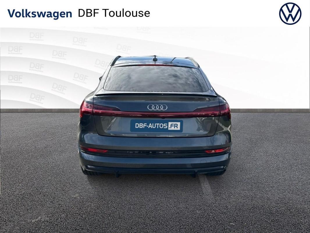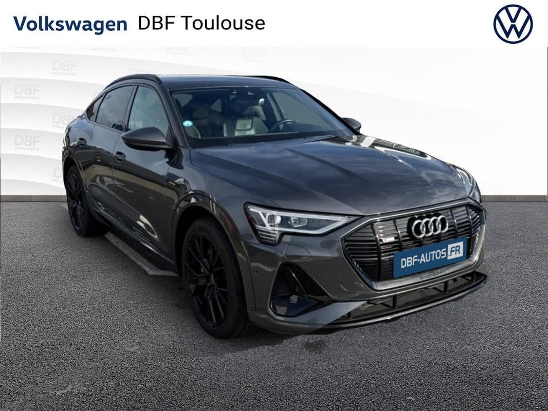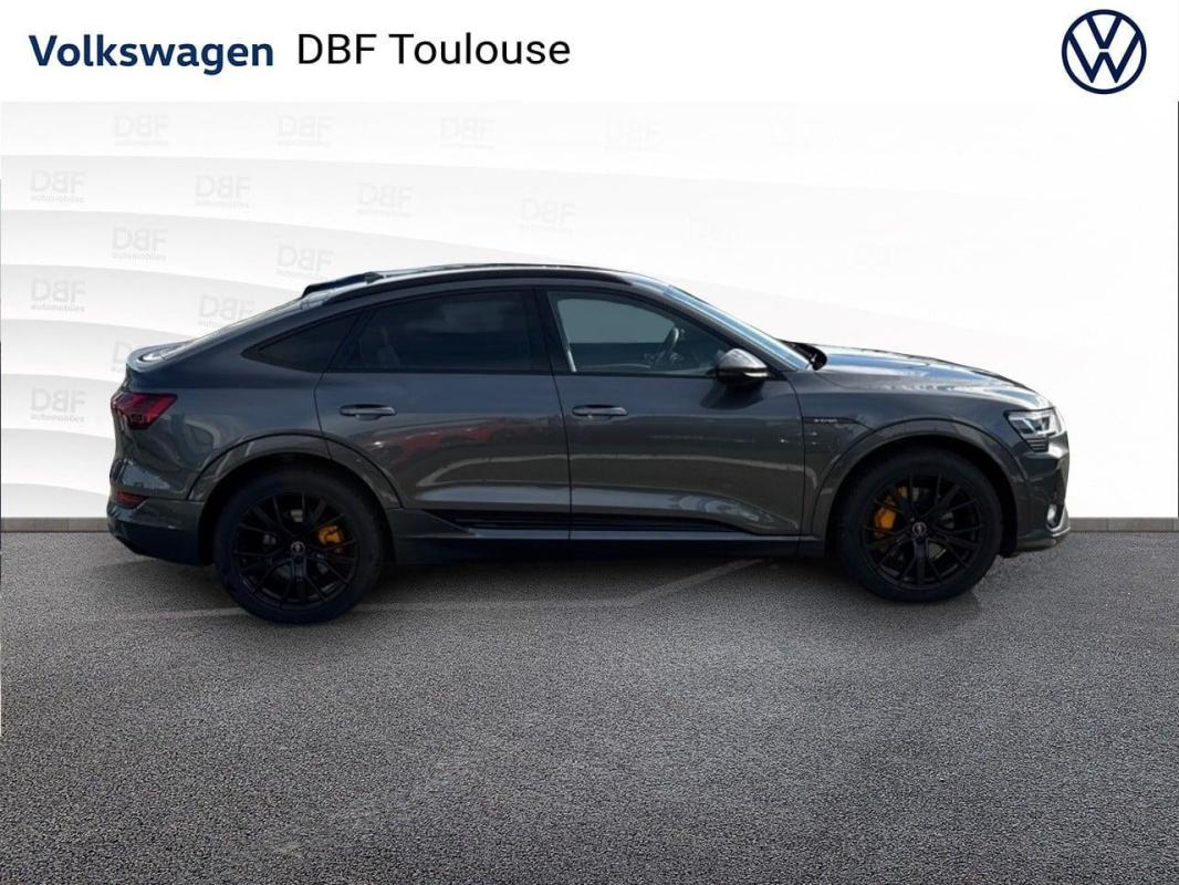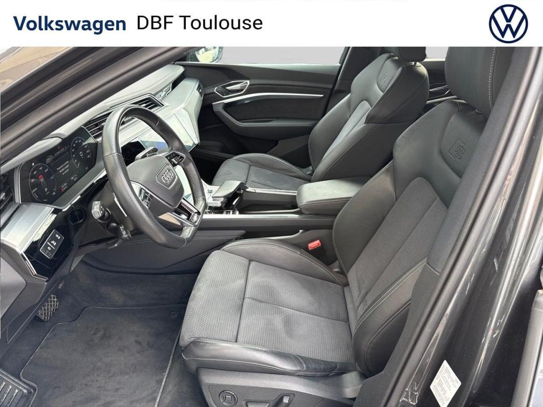 Sportback 50 quattro 313 ch S line, électrique, gris nacré, 25/12/2021, Ciel de pavillon en tissu noir, Commande de désactivation de l'airbag passager AV, Boîtiers de rétroviseurs extérieurs dans la couleur de la carrosserie, Interface Bluetooth, Pack Rangement et Coffre, Réception radio numérique, Capot de coffre à ouverture et fermeture électriques, Système audiophonique Audi, Pack Brillance, Caméra de recul, Fixation pour sièges enfants ISOFIX pour le siège passager AV, Audi Pre Sense Basic, Accoudoir central AV confort avec inclinaison réglable et coulissant en longueur, Sièges AV Sport, Vitres AR surteintées, Préparation pour crochet d'attelage, Adaptive Air Suspension, Applications décoratives en Aluminium Brossé mat foncé, Système avancé de contrôle de pression des pneus, Audi Smartphone Interface, Clé Audi connect, Assistant de feux de route, Set de réparation pour pneus, Clé à fréquence radio, Audi Music Interface à l'AV et l'AR, Rétroviseur intérieur jour/nuit automatique sans encadrement, Affichage de contrôle de pression des pneus, Airbags latéraux à l'AV et système d'airbags de tête, Fixation pour sièges enfants ISOFIX et Top Tether pour les places AR extérieures, Régulateur/Limiteur de vitesse, Audi Pre Sense front, Avertissement de franchissement de ligne, Ecrous de roues antivol et indicateur de desserrage d'écrous, Moulures de seuil de portes éclairées avec insert en aluminium AV/AR et inscription "S" à l'AV, Audi Music Interface, Pack Non fumeur, Climatisation automatique confort 2 zones, Trousse de secours avec triangle de présignalisation, Tapis de sol à l'AV et à l'AR, Rampes de pavillon en Aluminium, anodisées, Outillage de bord, Jantes en aluminium coulé style 5 branches dynamiques gris contrasté partiellement polies, 9Jx20", Pneus 255/50 R20, Eclairage au sol à LED avec projection du logo "e-tron", Touches de commande façon verre en noir avec retour haptique, Appui lombaire à 4 axes pour les sièges AV, Sièges avant à réglage électrique avec fonction mémoire pour le siège du conducteur et les rétroviseurs extérieurs, Clé confort incluant déverrouillage du coffre par capteur, Rétroviseurs extérieurs avec commutation jour/nuit automatique des deux côtés et fonction mémoires, Direction progressive, Transmission intégrale e-quattro, Appel d'urgence et service Audi connect incluant commande de véhicule e-tron, Navigation MMI plus avec MMI touch response, MMI Radio plus avec MMI touch response, Rétroviseurs extérieurs avec les fonctions suivantes : réglables électriquement, dégivrants, avec clignotants à LED intégrés, Projecteurs à technologie LED, Vitres athermiques : teintées vertes, lunette AR dégivrante, avec minuterie, Caméra frontale multifonction pour systèmes de sécurité active du véhicule, Audi parking system plus avec indicateur de zone environnante, Système de recharge e-tron compact, Prise de recharge Combo 2, Suspension Adaptative Pneumatiques Sport, Pack Extérieur S line, Pack design intérieur S line, Partie supérieure du tableau de bord et éléments de l?habitacle inférieurs en similicuir, Etriers de frein laqués Orange "e-tron", Audi Virtual cockpit Plus, Volant 3 branches avec méplat et zones de préhension élargie, Système AVAS de sonorisation extérieure du véhicule, Câble de recharge mode 3 pour recharge publique 22 kW, Navigation & Infotainment Audi connect, Sellerie cuir/Dinamica Fréquence, Prise USB pour les passagers AR, Système de recharge compact, Trousse de secours, triangle de présignalisation et veste de sécurité, Pack Esthétique Noir, Jantes aluminium Audi Sport 21" Style 5 branches en "V" design étoile noir Dimensions : 9, 5 J x 21" Pneumatiques : 265/45 R 21, Peinture métallisée Gris Daytona