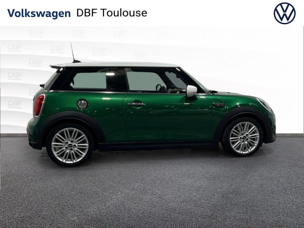 HATCH F56 LCI II Cooper S 178 ch DKG7 Edition Premium Plus, essence, vert, 17/01/2024, Poignées de portes chromées, Poignées intérieures de portes chromées, Siège conducteur réglable en hauteur, Siège passager réglable en hauteur, Toit couleur carrosserie, Double sortie d'échappement centrale et chromée, Système de haut-parleurs Hifi Harman/Kardon, DSC, Détecteur de pluie et allumage automatique des projecteurs, Sièges AV Sport, Sièges AV chauffants, Accès Confort, Tapis de sol en velours, Boîte à gants verrouillable, Réglage en hauteur du siège passager AV, Ecrous de roues antivol, 3ème feu stop, Pare-chocs AV et AR dans la couleur de la carrosserie, Système d'accès aux places AR Easy-Entry, Verrouillage centralisé des portes, du coffre et de la trappe à carburant, Condamnation enfant mécanique, Kit Eclairage, Ouïes latérales chromées "S" avec répétiteurs de clignotants blancs intégrés, Lève-vitres électriques AV avec commande à impulsion et protection anti-pincement, Système de maintenance intelligent Condition Based Service, Porte-boissons AV, Triangle de présignalisation avec kit de premiers secours, Tuner DAB, Toit ouvrant panoramique en verre, Accoudoir central AV inclinable en 4 positions, Surveillance de la pression des pneumatiques, Caméra de recul, Rétroviseur intérieur anti-éblouissement électrochrome, Fixations ISOFIX à l'AV avec désactivation de l'airbag passager, MINI Driving Modes, Radars de stationnement AR, Climatisation automatique bi-zone, Régulateur de vitesse avec fonction freinage, Ordinateur de bord multifonctions, Projecteurs Full LED, Becquet AR de toit, Contour de calandre chromé, Baguette inférieure de calandre chromée, Calandre au contour chromé avec grille façon "nid d'abeilles" et sigle S, Entrée d'air de capot AV, Banquette AR 2 places rabattable 60/40, Ciel de pavillon Satellite Grey, Prise 12V sous la console centrale, Teinte d'habitacle Carbon Black, Anneau lumineux LED écran central, Fonction "Follow me home", éclairage d'accompagnement, Fonction profile: import/export des données et réglages véhicule, Fonction Start/Stop et démarrage sans clé, 2ème clé radiocommandée, Réglage électrique de la portée des projecteurs, Rétroviseurs extérieurs à réglage électrique, Vitre AR chauffante avec essuie-glace, Crash Sensor activation automatique en cas d'accident: déverrouillage des portes, éclairage intérieur, feux de détresse, coupure batterie et pompe à carburant, Fonction sécurité piéton avec capot actif, DTC Dynamic Traction Control avec fonction EDLC, Trappe à carburant côté droit, Seuils de portes chromés, Sièges AV Sport avec réglage de la longueur d'assise, poches de rangement au dos des sièges et appui lombaire, Surveillance de l'éclairage extérieur, 4 Appuis-têtes réglables en hauteur, Volant en cuir 3 branches réglable en hauteur et en profondeur avec insert Piano Black, 2HP et 2 woofers, Ouverture et fermeture à distance des vitres et du TOE si équipé, Verrouillage automatique des portes dès 16 Km/h, ABS, y compris assistance au freinage d'urgence et contrôle de freinage en courbe, Indicateur de pressions des 4 pneus et avertisseur automatique en cas de perte de pression d'au moins 25% sur un des pneus, Appel d'urgence intelligent, TeleServices, MINI Safety, Kit de réparation de pneus, Jantes alliage 7Jx17" design "Rail Spoke", Touches multifonctions sur le volant, Boîte de vitesses Sport 7 rapports à double embrayage, Connectivité avancée et recharge sans fil par induction, Système de navigation MINI, Service ConnectedDrive, Remote Services, Système Bluetooth, Affichage tête-haute rétractable, Sièges AV Sport avec Sellerie Similicuir Carbon Black, Feux AR à LED avec design Union Jack, Freins à disques à l'AV, Inserts annulaires et surface décorative pour la planche de bord "Piano Black", Anti-démarrage électronique EWS, 2 Airbags frontaux, conducteur et passager, 2 Airbags latéraux AV, intégrés au dossier de siège AV, 2 Airbags de tête, 2 Prétensionneurs de ceinture siège AV, Colour Line teinte Carbon Black, Feux de stop dynamiques "Flashs" des feux stop en freinage d'urgence et allumage des feux de détresse à l'arrêt., Instrumentation digitale avancée, Apple CarPlay à durée illimité., Coques de rétroviseurs dans la teinte de la carrosserie, Poignée de coffre teinte noire, Baguettes de seuil de porte avec inscription de la motorisation façon métallique, Trappe à essence chromée, Surfaces intérieures Piano Black, Autoradio MINI Visual Boost avec ecran couleur 8, 8'' tactile, Rétroviseurs rabattable électriquement et fonction anti-éblouissement côté conducteur, Système de manoeuvres automatiques avec radars de stationnement AV et AR, Volant Sport gainé cuir Nappa, Eclairage d'ambiance, Ecran central 8, 8", Clignotants blancs, Fonction Key Profil, 12 ans de garantie contre la perforation par la rouille, 3 ans garantie sur la peinture, 2 ans de garantie sur l'ensemble du véhicule, 2 ans de garantie sur les pièces d'origine MINI, 2 ans de garantie sur les accessoires d'origine MINI, Centres de roues 1TO6, Ciel de pavillon anthracite, Teinte de carrosserie métallisée - British Racing Green