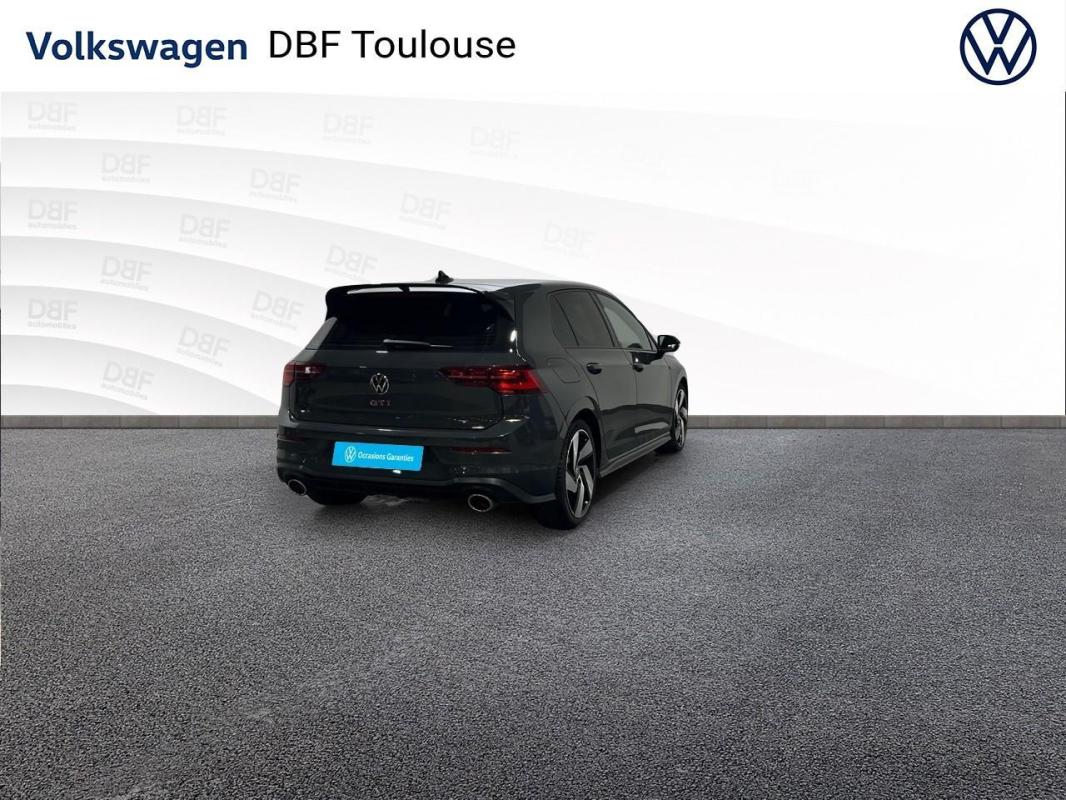 2.0 TSI 300 DSG7 GTI Clubsport 45, essence, gris, 03/05/2021, Airbags latéraux AV, Cache-bagages amovible, Essuie-glace AR intermittent avec lave-glace, Pack Visibilité, Vitres AV et AR électriques, Volant réglable en hauteur et en profondeur, Mesures supplémentaires de protection des piétons, Vitres athermiques teintées vertes, Indicateur de température extérieure avec avertisseur de gel, Tapis de sol AV et AR, Alerte de perte de pression des pneus, Rétroviseurs extérieurs avec fonction mémoire, Ecrous antivol, Correcteur électronique de trajectoire ESP, amplificateur de freinage d'urgence, antiblocage des roues ABS, blocage électronique de différentiel EDS, répartiteur électronique de freinage EBV, antipatinage électronique ASR, régulateur électronique de couple MSR et assistance au contrebraquage, Sortie d'echappement chromée à droite et à gauche, Airbag de genoux conducteur, Fatigue Détection : système de détection de fatigue du conducteur, Vitres AR et lunette AR surteintées à 65 %, Boitiers des rétroviseurs extérieurs Noirs, Rear Assist: Caméra de recul avec visualisation de la zone située à l'AR du véhicule, Eclairage à LED de la plaque d'immatriculation AR, Toit noir, Chargeur induction, Peinture unie Blanc Pur, Kit de dépannage : compresseur 12 V et produit d'étanchéité de pneu, XDS : Système agissant comme un différentiel autobloquant électronique permettant une meilleure motricité en courbe grâce à une répartition optimale de la puissance et du couple sur les roues AV, Prise 12 V dans le coffre, Activation automatique du signal de détresse en cas de freinage d'urgence, Etriers de frein rouge à l'AV et à l'AR, Système Start/Stop avec récupération d'énergie au freinage, Oeillets d'arrimage ISOFIX, Système de freinage anti multicollision : ce dispositif freine automatiquement le véhicule après un premier choc afin de limiter le risque de multicollision, Projecteurs antibrouillard AV avec éclairage statique d'intersection, Pare-chocs, boîtiers de rétroviseurs extérieurs et poignées de portes dans la couleur carrosserie, Protection antidémarrage, Avertisseur sonore et témoin d'oubli du port de la ceinture de sécurité à l'AV et à l'AR, Pommeau de levier de vitesse en style aluminium, ParkPilot, aide au stationnement AV/AR, Liseré rouge dans la calandre et les phares, Interface téléphone Bluetooth, Blocage de différentiel d?essieu AV "VAQ", Rétroviseur intérieur à réglage jour/nuit automatique, Réglage du site des phares, Sièges AV confort réglables en hauteur, E-call service: Appel d'urgence manuel ou automatique, Sellerie sport spécifique en microfibre/tissu, App-Connect sans fil, affichage et contrôle via l'écran tactile de la voiture du contenu, des fonctions et des applications compatibles présents sur le Smartphone, Frein de stationnement électromécanique avec fonction d'immobilisation en pente "Auto Hold" et assistant de démarrage en côte, Services "We Connect Plus" 36 mois pour "Discover Pro", Feux AR à LED avec clignotants AR défilants, Régulateur de vitesse adaptatif et prédictif ACC, Front Asisst avec détecteur des piétons, Verrouillage centralisé avec système de fermeture et de démarrage sans clé Keyless Access/Advanced, Projecteurs IQ.Light - Matrix LED, Eclairage d'ambiance - 30 couleurs et éclairage de plancher à l'AV, Sélection du profil de conduite, Airbags de tête pour passagers AV et AR, Appuis-tête réglables en hauteur sur les sièges AV et AR, Service d'appel d'urgence, Technologie Car2X, Accoudoir central AR rabattable avec 2 portes-boissons, Cerclage chromé des commandes des vitres, de réglage des rétroviseurs et des aérateurs, Miroirs de courtoisie éclairés dans les pare-soleil, Rangement et prise 12 V à l'AV, 2 interfaces USB-C à l'AV et 2 prises de chargement USB-C derrière l?accoudoir pour les passagers AR, Banquette AR rabattable 2/3-1/3 avec trappe à skis, Ecran couleur tactile 10" haute résolution, Réception radio numérique DAB+, Revêtement de porte et latéral en feuille de mousse et tissu, Eclairage d'ambiance extérieur poignées de portes éclairées et éclairage périmétrique avec projection du logo, Baguette chromée sur les vitres latérales, Climatiseur "Air Care Climatronic" 3 zones et filtre anti-allergène et éléments de commandes à l'AR, Rétroviseurs extérieurs rabattables et réglables électriquement, Park Assist: Système d'assistance au stationnement en créneauet et en bataille, Airbags frontaux AV conducteur et passager, Feu AR de brouillard d?un côté, feux de recul des deux côtés, Rétroviseurs extérieurs avec dégivrage séparé, Eclairage de plancher à LED à l'AV avec possibilité de sélectionner la couleur d'éclairage, Système Navigation & Infotainment "Discover Media", Câble adaptateur USB-C vers USB-A, Projecteurs antibrouillard avec feux de braquage, Application décorative "Black Metal Chrome" pour tableau de bord, Ceintures de sécurité automatiques AV trois points à enrouleur avec prétensionneurs, Ciel de pavillon Noir Soul, Préparation pour "We Connect" et "We Connect Plus", Peinture unie Blanc Pur/Toit Noir uni, Assistant de conduite ?Travel Assist? avec ?Emergency Assist?, Augmentation de limitation électronique de vitesse maximale à 270 km/h, Badges GTI sur les ailes AV et inscription GTI sur le hayon, Baguette LED, Digital Cockpit Pro : combiné d'instruments digital avec écran digital haute résolution de 10, 25", Disques de frein 18" à l'AV et 17" à l'AR, Chrome sur le bouclier AV et le pare-choc AR, 2 prise USB à l'AR de l'accoudoirs central, Radio Composition, 7 HP et écran 8??, Eléments de carrosserie spécifiques ?GTI?, Sièges AV sports specifique GTI Clubsport 45, appui-tetes intégrés, appuis lombaires AV, Volant sport multifonction en cuir spécifiqque "GTI Clubsport 45" palettes au volant, commandes tactiles et retour haptique, Becquet AR de pavillon noir en deux par