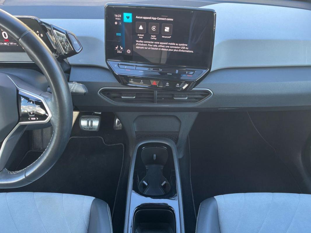 204 ch Pro Performance Business, électrique, argent, 24/01/2023, Pack Visibilité, Direction électromécanique à assistance variable en fonction de la vitesse, Clignotants confort, Indicateur de température extérieure avec avertisseur de gel, Pack Confort, Tapis de sol AV et AR, Alerte de perte de pression des pneus, Boîte à gants verrouillable et éclairée, Avertisseur sonore 1 ton, Eclairage à LED de la plaque d'immatriculation AR, Kit de dépannage : compresseur 12 V et produit d'étanchéité de pneu, Prise 12 V dans le coffre, Activation automatique du signal de détresse en cas de freinage d'urgence, Oeillets d'arrimage ISOFIX, Système de freinage anti multicollision : ce dispositif freine automatiquement le véhicule après un premier choc afin de limiter le risque de multicollision, Volant multifonctions réglable en hauteur et en profondeur, Protection antidémarrage, Détecteur de fatigue, 7 Airbags, Frein de stationnement électromécanique avec fonction d'immobilisation en pente Auto-Hold, Freins à disque à l'AV, Pochette de premiers secours, triangle de sécurité et gilet rétroréfléchissant, Freins à tambours à l' AR, Réception radio numérique DAB+, Car2X, ACC : Régulateur de vitesse adaptatif et prédictif, Turn Assist : Freinage d'urgence d'intersection, Jantes 18'' "East Derry" Argent Pneumatiques 215/55 R18, Câble de recharge Mode 2 - Type 2 pour prise domestique, Câble de recharge Mode 3 - Type 2 pour borne de recharge, Système d'aide à l'écoconduite - Eco Assistance, Sélecteur de vitesse derrière le volant avec la touche de frein de stationnement électronique, Système de récupération d'énergie au freinage et à la décélération, Réglages de la charge via le système d'infodivertissement ou l'application We Connect ID, E-sound - son spécifique ID, Climatisation stationnaire, Lane Assist - Assistant au maintien dans la voie avec correction de trajectoire, Front Assist - Système de surveillance périmétrique avec fonctions de freinage d'urgence en ville et détection des piétons, Park Pilot : Système d'aide au stationnement AV et AR avec signaux sonores et visualisation de la distance des obstacles sur l'écran, Intervention de freinage automatique lors des manoevres, Carrosserie bicolore - Toit et hayon noir, Vitres AV et AR électriques avec dispositif antipincement, Sign Assist - Système de détection de la signalisation routière, Sièges AV réglables manuellement en hauteur, profondeur et inclinables, Avertissement de distance avec le véhicule précédent, Avertisseur sonore et lumineux pour ceintures non attachées à l'AV et à l'AR, Verrouillage centralisé avec télécommande à fréquence radio, 2 ports USB-C à l'AV, Lampes de lecture tactiles avec réglage manuel de l'intensité lumineuse, Pare-soleils AV avec miroir de courtoisie éclairé, Système de son 4+1 haut-parleurs, Climatiseur 1-Zone "Air Care Climatronic" avec mode recyclage de l'air ambiant, Dispositif électronique de démarrage sans clé "Keyless-Go" - Démarrage possible avec une simple pression sur la pédale de frein, App-Connect sans fil, ID. Display de 5, 3'' : L'ID. Display est un combiné d'instruments numérique doté d'un afficheur couleur TFT à haute résolution. En plus du tachymètre numérique, il est possible d'afficher des informations supplémentaires provenant des systèmes d'aide à la conduite, par la sélection de divers profils d'information., ID.Light - L'ID. Light est un concept d?éclairage intelligent qui vous fournit des informations complémentaires sur l'état du véhicule. Lors de la disponibilité de marche et pendant la conduite, des informations complémentaires sur la situation de conduite actuelle sont fournies par l'ID. Light, Ecran central tactile de 10'' personnalisable, Commande Vocale intuitive -"Bonjour ID." - Certaines fonctions peuvent être exécutées grâce à la commande vocale, Système d'appel d'urgence - eCal, Appui-tête réglables en hauteur sur les sièges AV et AR, Gestion des paramètres de confidentialité liés à la eSIM et à We Connect ID., Services connectés "We Connect ID." 36 mois, Pack Infotainment, Phares LED et feux AR à LED, Réglage des phares tactile, Galerie porte-bagages, Accoudoir pour les sièges AV, Peinture Unie Gris Lunaire/Toit Noir, Portes AR avec sécurité enfants, Ceintures de sécurité automatiques AV trois points à enrouleur avec prétensionneurs et AR trois points à enrouleur, Correcteur électronique de trajectoire ESP, Amplificateur de freinage d'urgence AFU, Servofrein électromécanique eBKV, Freinage mixte BKU, système d'antiblocage des roues ABS, blocage électronique de différentiel EDS, répartiteur lectronique de freinage EBV, antipatinage électronique ASR, régulateur électronique de couple MSR, assistance au contrebraquage, Programme électronique de stabilisation ESC, Système agissant comme un différentiel autobloquant électronique permettant une meilleure motricité en courbe grâce à une répartition optimale de la puissance et du couple sur les roues AR XDS, Système de refroidissement liquide, Chargeur embarqué pour prise Type 2 : 11 kW AC, Pack Assistance, Système d'appel en cas de panne B-Call, Intérieur Style avec habillage et volant Noir et avec sellerie en ArtVelours et similicuir, tableau de bord personnalisable, revêtement du tableau de bord et des portes soft-touch, éclairage d?ambiance personnalisable, pédalier en acier inoxydable avec symboles Play et Pause, banquette AR 3 places rabattable avec trappe à skis, sièges AV réglables en hauteur, Jantes 18'' "East Derry" bicolore Argent Pneumatiques 215/55 R18, Climatiseur 1-Zone "Climatronic", Volant multifonction à réglage mécanique en hauteur et en longueur, Peinture Métallisée Gris Argent/Toit Noir