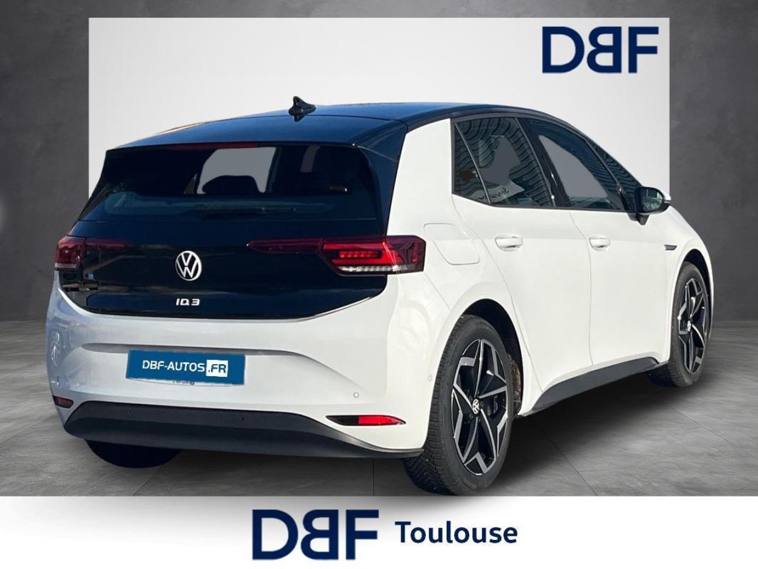 204 ch Pro S Business, électrique, blanc, 20/08/2022, Pack Visibilité, Direction électromécanique à assistance variable en fonction de la vitesse, Clignotants confort, Indicateur de température extérieure avec avertisseur de gel, Pack Confort, Tapis de sol AV et AR, Alerte de perte de pression des pneus, Boîte à gants verrouillable et éclairée, Avertisseur sonore 1 ton, Eclairage à LED de la plaque d'immatriculation AR, Prise 12 V dans le coffre, Activation automatique du signal de détresse en cas de freinage d'urgence, Oeillets d'arrimage ISOFIX, Système de freinage anti multicollision : ce dispositif freine automatiquement le véhicule après un premier choc afin de limiter le risque de multicollision, Volant multifonctions réglable en hauteur et en profondeur, Protection antidémarrage, Détecteur de fatigue, 7 Airbags, Frein de stationnement électromécanique avec fonction d'immobilisation en pente Auto-Hold, Freins à disque à l'AV, Pochette de premiers secours, triangle de sécurité et gilet rétroréfléchissant, Freins à tambours à l' AR, Réception radio numérique DAB+, Car2X, ACC : Régulateur de vitesse adaptatif et prédictif, Turn Assist : Freinage d'urgence d'intersection, Jantes 18'' "East Derry" Argent Pneumatiques 215/55 R18, Câble de recharge Mode 2 - Type 2 pour prise domestique, Câble de recharge Mode 3 - Type 2 pour borne de recharge, Système d'aide à l'écoconduite - Eco Assistance, Sélecteur de vitesse derrière le volant avec la touche de frein de stationnement électronique, Système de récupération d'énergie au freinage et à la décélération, Réglages de la charge via le système d'infodivertissement ou l'application We Connect ID, E-sound - son spécifique ID, Climatisation stationnaire, Lane Assist - Assistant au maintien dans la voie avec correction de trajectoire, Front Assist - Système de surveillance périmétrique avec fonctions de freinage d'urgence en ville et détection des piétons, Park Pilot : Système d'aide au stationnement AV et AR avec signaux sonores et visualisation de la distance des obstacles sur l'écran, Intervention de freinage automatique lors des manoevres, Carrosserie bicolore - Toit et hayon noir, Vitres AV et AR électriques avec dispositif antipincement, Sign Assist - Système de détection de la signalisation routière, Sièges AV réglables manuellement en hauteur, profondeur et inclinables, Avertissement de distance avec le véhicule précédent, Avertisseur sonore et lumineux pour ceintures non attachées à l'AV et à l'AR, Verrouillage centralisé avec télécommande à fréquence radio, 2 ports USB-C à l'AV, Lampes de lecture tactiles avec réglage manuel de l'intensité lumineuse, Pare-soleils AV avec miroir de courtoisie éclairé, Système de son 4+1 haut-parleurs, Climatiseur 1-Zone "Air Care Climatronic" avec mode recyclage de l'air ambiant, Dispositif électronique de démarrage sans clé "Keyless-Go" - Démarrage possible avec une simple pression sur la pédale de frein, App-Connect sans fil, ID. Display de 5, 3'' : L'ID. Display est un combiné d'instruments numérique doté d'un afficheur couleur TFT à haute résolution. En plus du tachymètre numérique, il est possible d'afficher des informations supplémentaires provenant des systèmes d'aide à la conduite, par la sélection de divers profils d'information., ID.Light - L'ID. Light est un concept d?éclairage intelligent qui vous fournit des informations complémentaires sur l'état du véhicule. Lors de la disponibilité de marche et pendant la conduite, des informations complémentaires sur la situation de conduite actuelle sont fournies par l'ID. Light, Ecran central tactile de 10'' personnalisable, Commande Vocale intuitive -"Bonjour ID." - Certaines fonctions peuvent être exécutées grâce à la commande vocale, Système d'appel d'urgence - eCal, Appui-tête réglables en hauteur sur les sièges AV et AR, Gestion des paramètres de confidentialité liés à la eSIM et à We Connect ID., Services connectés "We Connect ID." 36 mois, Pack Infotainment, Phares LED et feux AR à LED, Réglage des phares tactile, Galerie porte-bagages, Accoudoir pour les sièges AV, Peinture Unie Gris Lunaire/Toit Noir, Portes AR avec sécurité enfants, Ceintures de sécurité automatiques AV trois points à enrouleur avec prétensionneurs et AR trois points à enrouleur, Correcteur électronique de trajectoire ESP, Amplificateur de freinage d'urgence AFU, Servofrein électromécanique eBKV, Freinage mixte BKU, système d'antiblocage des roues ABS, blocage électronique de différentiel EDS, répartiteur lectronique de freinage EBV, antipatinage électronique ASR, régulateur électronique de couple MSR, assistance au contrebraquage, Programme électronique de stabilisation ESC, Système agissant comme un différentiel autobloquant électronique permettant une meilleure motricité en courbe grâce à une répartition optimale de la puissance et du couple sur les roues AR XDS, Système de refroidissement liquide, Chargeur embarqué pour prise Type 2 : 11 kW AC, Pack Assistance, Système d'appel en cas de panne B-Call, Intérieur Style avec habillage et volant Noir et avec sellerie en ArtVelours et similicuir, tableau de bord personnalisable, revêtement du tableau de bord et des portes soft-touch, éclairage d?ambiance personnalisable, pédalier en acier inoxydable avec symboles Play et Pause, banquette AR 3 places rabattable avec trappe à skis, sièges AV réglables en hauteur, Jantes 18'' "East Derry" bicolore Argent Pneumatiques 215/55 R18, Climatiseur 1-Zone "Climatronic", Volant multifonction à réglage mécanique en hauteur et en longueur, Peinture Métallisée Blanc Glacier/Toit Noir