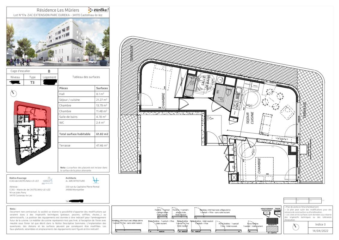Beau 2 chambres situé au dernière étage d'une résidence récente