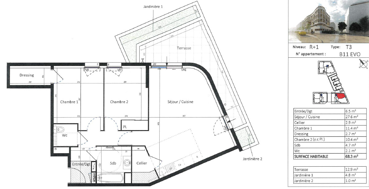 D'une chambre de 11,4 m² avec dressing de 2,7m², ainsi qu'une deuxième chambre de 10,4m²