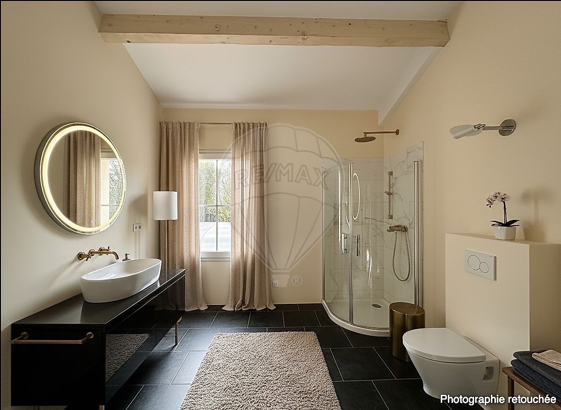 Nos visuels vous proposent un ameublement moderne, pensé pour valoriser les volumes et la luminosité de cette maison, sans aucune modification des sols.