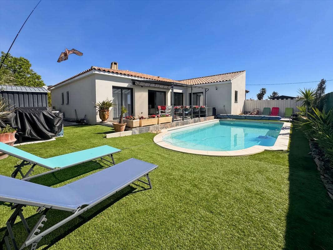 Cette maison individuelle de 5 pièces d'environ 109 m2, répartie sur deux niveaux, se situe à Agde dans un quartier calme, proche des commodités. Elle offre trois chambres, un séjour avec salle à manger, une cuisine ouverte, ainsi qu'un bureau. Vous profitez également d'une belle terrasse et d'un vaste jardin d'environ 310 m2, idéal pour les moments en extérieur.