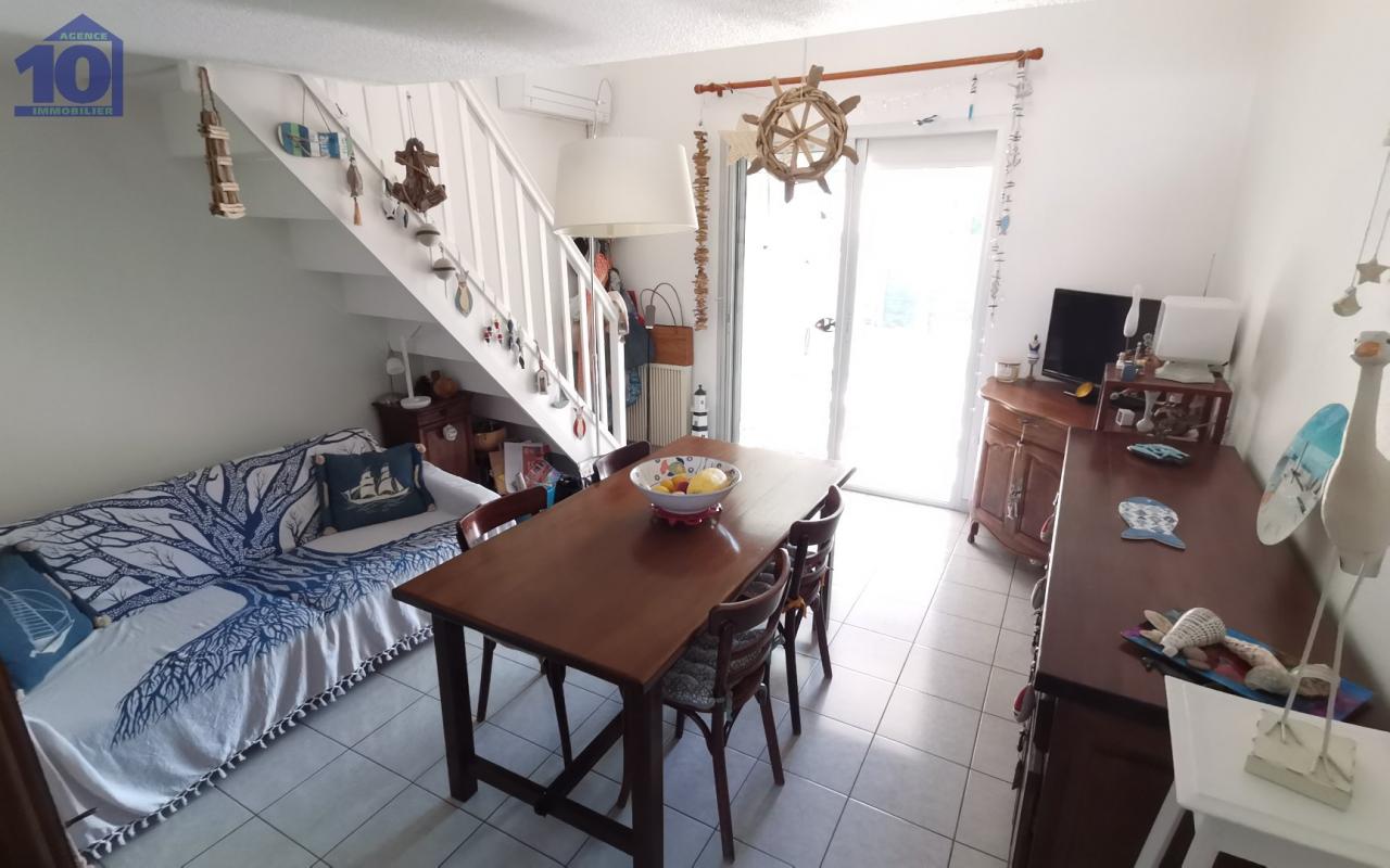 Dans une résidence sécurisée avec piscine, au calme, à 800 mètres de la plage et 20 minutes du centre, découvrez ce pavillon de 2001 de type T3 avec garage accolé et parking privatif supplémentaire. Entièrement climatisé, il dispose au rez-de-chaussée d'une entrée par le coin cuisine équipée ouvrant sur une agréable pièce de vie prolongée par une véranda, l'ensemble donnant accès à une terrasse de 17 m². Une salle d'eau faïencée avec WC complète ce niveau. Depuis la véranda, vous accéderez directement au garage de 26 m². À l'étage, l'espace nuit offre deux chambres dont une en mezzanine, ainsi qu'un WC indépendant. Un bien confortable, fonctionnel et idéalement situé pour profiter de Valras-Plage.