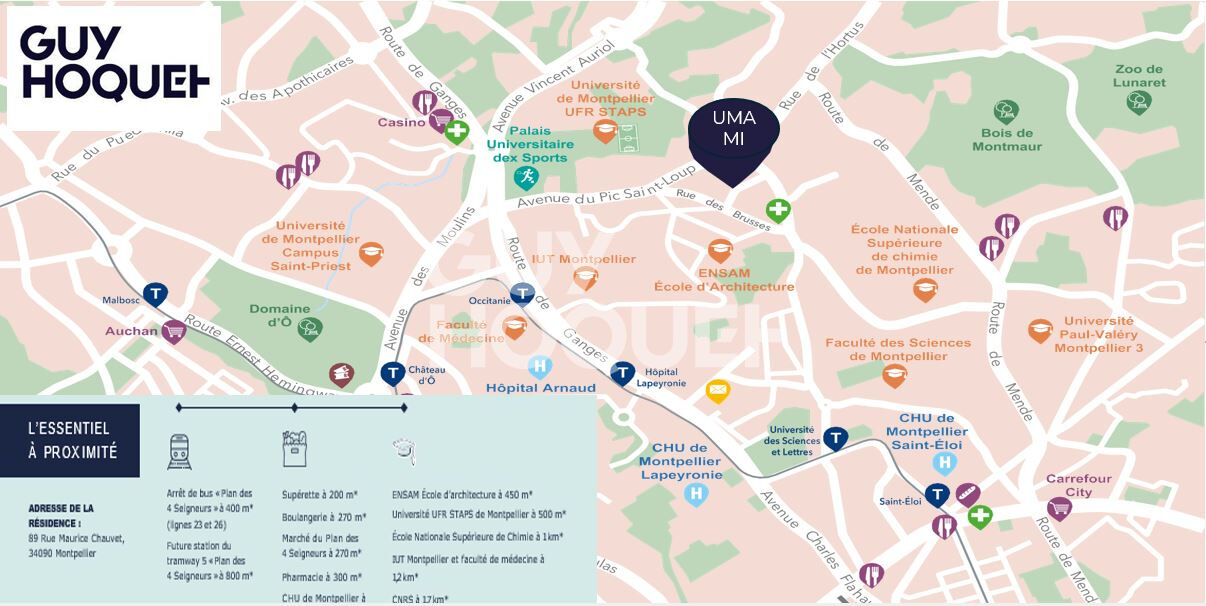 La localisation est optimale avec l'Université de Montpellier UFR STAPS, l'Université de Montpellier Campus Saint Priest, l'IUT de Montpellier, la Faculté de Médecine, l'ENSAM Ecole d'Architecture, l'Ecole Nationale Supérieure de Chimie de Montpellier, la Faculté des Sciences de Montpellier, l'Université Paul Valéry Montpellier 3 à proximité.