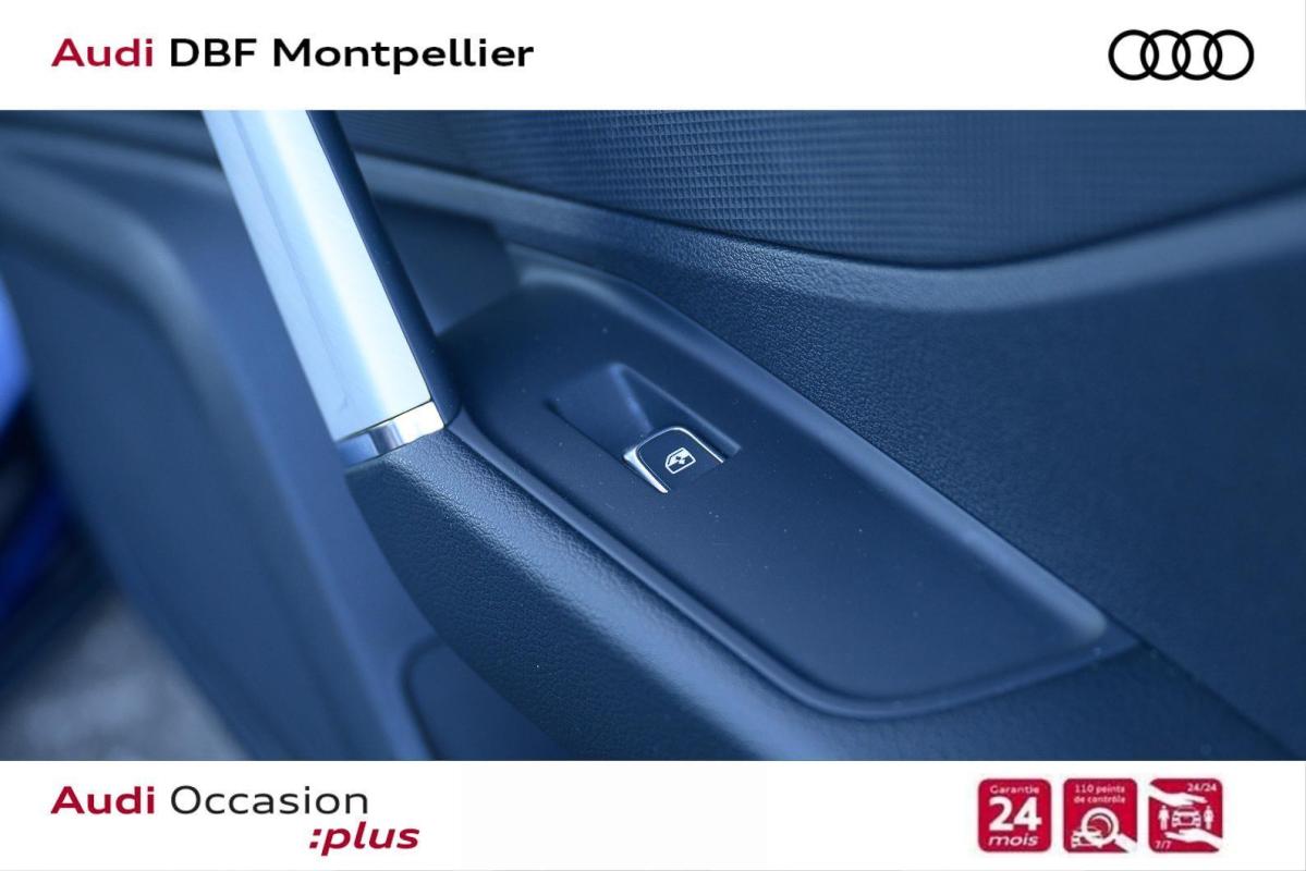 35 TFSI 150 S tronic 7 Advanced, essence, bleu métallisé, 06/08/2024, Rétroviseur intérieur jour/nuit automatique, Applications décoratives en Aluminium brossé mat, Touches multifonctions sur le volant, Accoudoir central AV, Coques de rétroviseurs extérieurs couleur carrosserie, Boîtiers de rétroviseurs extérieurs laqués dans la couleur carrosserie, Assistant de feux de route, Caméra de recul, Système de lecture des panneaux de signalisation par caméra, Peinture intégrale, Clé Confort, Pack Aluminium Intérieur, Sièges AV Sport, Volant 3 branches multifonctions en cuir, Audi Music Interface, Audi Smartphone Interface, Audi Sound System avec 10 HP, Réception radio numérique DAB, Système d'information du conducteur avec écran couleur, Sellerie tissu Index, Audi Drive Select, Audi Hold Assist, Câbles de recharge pour téléphone portable, compatibles iPhone et Android, Trousse de secours, triangle de présignalisation, Climatisation automatique 2 zones, Audi Virtual Cockpit, Régulateur de vitesse, incluant limiteur de vitesse, Airbags latéraux AV avec système d'airbags de tête, Affichage de perte de pression des pneus, Audi Parking system Plus, MMI Radio Plus, Vitres athermiques, Tapis AV et AR, Rétroviseurs extérieurs réglables et escamotables électriquement, jour/nuit automatique, dégivrants des deux côtés et buses de lave-glaces dégivrantes, Feux AR à LED, Blade Argent Magnesium, Pack intérieur Sport, Pack confort, Pack assistance stationnement, Pack connectivity, Phares Matrix LED avec clignotants dynamiques à l?AR, Jantes en aluminium, 5 branches design dynamique, contrastées gris, 7J x 18" avec pneus 215/50 R18, Direction progressive, Détecteur d?occupation de sièges, Audi pre sense front, Limiteur de vitesse, Ciel de pavillon en tissu Gris Titane, Dossier de banquette AR rabattable en deux parties 40 : 60 ou entièrement, Siège conducteur et passager AV réglable en hauteur, Détecteur de pluie et de luminosité, Feux AR rouges, avec feux de recul blancs et feu de brouillard AR intégré à ampoules ; feux de plaque AR à LED, Préparation à la navigation avec MMI touch, Clé à fréquence radio, Lève-vitres électriques AV et AR, Désactivation de l?airbag passager AV, Audi connect sécurité et assistance en ligne, Moulures de seuil de portes éclairées avec insert en aluminium et inscription "S", Pare-brise avec bandeau pare-soleil gris, Audi Phone Box avec charge du téléphone par induction, Avertissement de sortie de voie, Set de réparation pour pneus, Peinture contrastée en Gris Manhattan, Sécurité enfants électrique sur les portières AR, Pack Eclairage d'ambiance, Appuis lombaires à 4 axes pour les sièges AV, Eclairage intérieur Module de pavillon à l?AV et à l?AR incluant spots de lecture, Climatisation automatique confort 2 zones, MMI radio plus avec MMI touch Ecran tactile de 8, 8", 2 interfaces USB de type A pour le chargement d?appareils externes, Interface Bluetooth, Commande vocale pour la téléphonie et les médias. Diversité de phases AM/FM. Volume sonore asservi à la vitesse, Tapis de sol à l'AV et à l'AR, Pack Aluminium Intérieur Éléments sur les diffuseurs d?air, les boutons de réglage des rétroviseurs, l?encadrement de la commande intérieure de verrouillage des portières, les lève-vitres, les touches de commande du frein de stationnement, le porte-monnaie, la bordure de l?insert cylindrique pour la prise de 12 volts, bouton d?éclairage rotatif ainsi que la barrette des poignées de portières en style aluminium, Pack Eclairage d'ambiance Module de pavillon à l?AV incluant spots de lecture, éclairage AR, miroirs de courtoisie éclairés, éclairage du coffre, éclairage au niveau des pieds à l?AV, Pack assistance stationnement Audi Parking System Plus, Caméra de recul, Pack confort Appui lombaires à 4 axes pour les sièges AV. Rétroviseur intérieur jour/nuit automatique. Rétroviseurs extérieurs réglables et escamotables électriquement, jour/nuit automatique, dégivrants des deux côtés et buses de laveglaces dégivrantes, Pack intérieur Sport Sellerie Sport à l'AV Pack éclairage d'ambiance Moulures de seuil de portes en aluminium et éclairées Pack aluminium intérieur Habillage des panneaux de portes à l'AV
