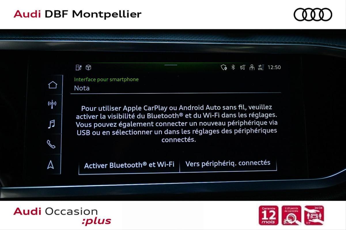 45 TFSIe 245 ch S tronic 6 S line, hybride essence électrique, blanc métallisé, 20/10/2022, Ciel de pavillon en tissu Noir, Interface Bluetooth, Pack Aluminium Intérieur, Accoudoir central AV avec vide-poches relevable et inclinaison réglable et coulissant en longueur, Audi Pre Sense front, Réception radio numérique, Audi Pre Sense Basic, Direction progressive, Audi Hold Assist, Appui lombaire à 4 axes pour les sièges AV: réglages électrique, horizontal et vertical, Volant 3 branches multifonction en cuir, Applications décoratives en Aluminium Brossé mat foncé, Affichage de contrôle de pression des pneus, Audi Parking System Plus, Climatisation automatique confort 2 zones, Régulateur de vitesse, Appel d'urgence Audi connect, Ecrous de roues antivol, Clé à fréquence radio, Tapis de sol à l'AV et à l'AR, Détecteur de pluie et de luminosité, Jantes en aluminium coulé 18" 5 branches en V 7Jx18" 235/55 R18, Sellerie Tissu/Similicuir Monopur 550, Volant cuir multifonctions Plus 3 branches, Pack Brillance Extérieur, Audi Virtual cockpit, Audi Drive Select, Suspensions Confort, Suspensions Sport, Appuis lombaires à 4 axes pour les sièges AV, Audi Connect Navigation et Divertissement, Accoudoirs des contre-portes en similicuir Monopur 550, Assise et dossier de banquette AR, divisée, rabattable 40/20/40, Direction assistée électromécanique, asservie à la vitesse, Rétroviseur intérieur jour/nuit automatique sans encadrement, Sièges AV réglables manuellement, Combiné d'instruments entièrement numérique 10, 25", Phares AV à LED clignotants à ampoule, Fixation pour sièges enfants ISOFIX et Top Tether pour les sièges extérieurs AR, Kit réparation, Outillage de bord, Trousse de secours, triangle de présignalisation et 2 vestes de sécurité, Pack S line extérieur, Pack S line intérieur, Banquette AR avec porte-gobelet dans l?accoudoir de la place centrale, Eclairage intérieur, Pack Extérieur, Audi Connect sécurité et assistance en ligne, Audi Connect navigation et divertissement, Pare-brise en verre de sécurité feuilleté athermique, Phares à LED avec clignotants dynamiques AR, Hayon de coffre à ouverture & fermeture électrique, Interface USB pour chargement d'appareils externes, Rétroviseurs extérieurs réglables, dégivrants et rabattables électriquement avec fonction rabat automatique, Accoudoir central coulissant en longueur, avec inclinaison réglable et vide-poches relevable, Assise et dossier de banquette AR, divisée, rabattable 40/20/40, Assise coulissante en longueur, Dossier avec inclinaison réglable, Navigation MMI plus avec MMI touch response, Câble de recharge HH Type E, MMI Radio Plus avec MMI Touch, Boîtiers de rétroviseurs extérieurs couleur carrosserie, Pare-brise en verre acoustique avec verre feuilleté athermique, Avertisseur de franchissement de ligne, 2 prises USB à l'AR et prise 12 V dans la console centrale AR, Avertisseur de franchissement de ligne et avertisseur de changement de voie, Extérieur standard, Câbles de recharge pour téléphone portable compatibles Apple et Android, Câble de chargement avec une prise domestique droite type E/F pour le système de recharge e-tron compact, Longueur : 1, 6 mètres, Intensité maximum : 8A, Connecteur : type domestique, Câble de charge pour station publique en CA pour charge en Mode 3 / Type 2 Le câble relie la borne de recharge a la trappe de recharge CA du véhicule. Puissance de charge maximum : 3, 6kW AC . Intensité maximal : 16A, Pare-chocs S line dans une peinture intégrale, Volant cuir Sport multifonctions Plus 3 branches avec méplat et palettes de commande au volant, Jantes en aluminium coulé 19" Audi Sport 5 branches doubles, finition titane mat, polies brillant 8.5Jx19" 255/45 R19, Audi Virtual cockpit plus, Audi Sound System, Caméra de recul, Assistant de maintien de vitesse adaptatif, Sièges AV sport, Vitrage Privacy : lunette AR, vitres de portières AR, et vitres latérales AR surteintées, Audi Smartphone Interface, Peinture métallisée Blanc Glacier