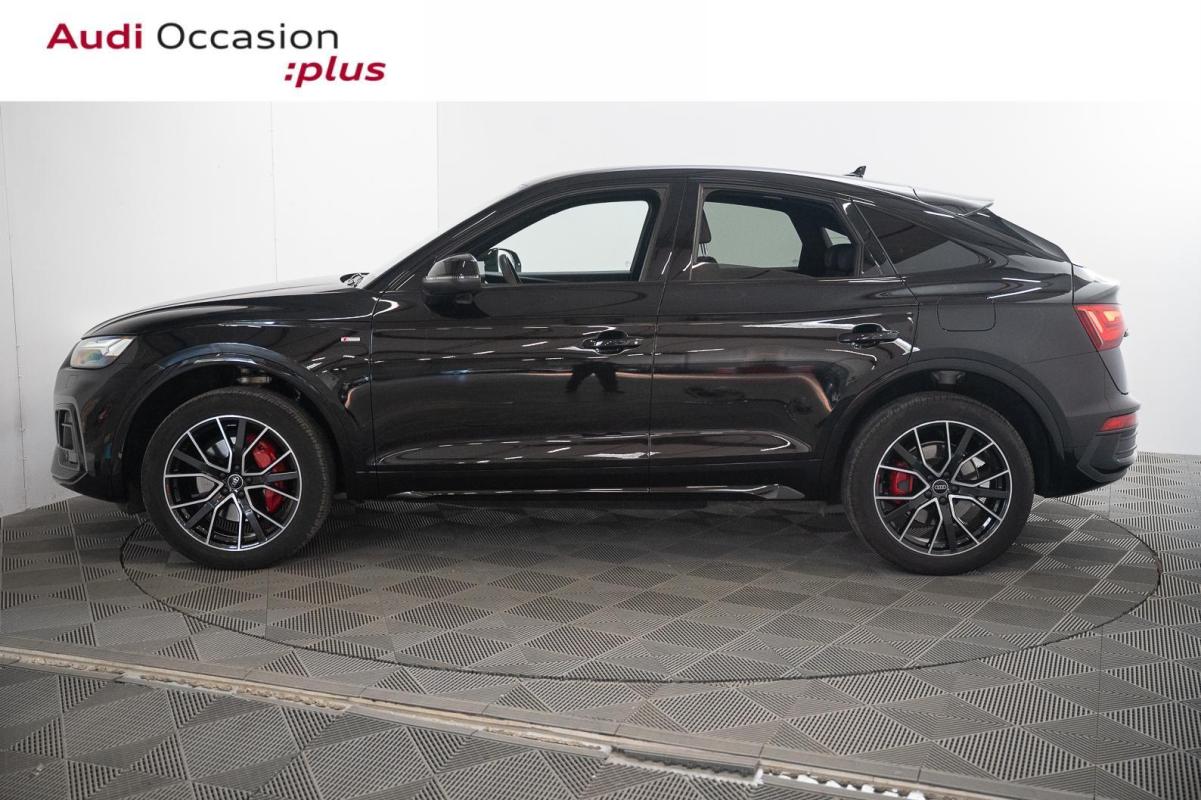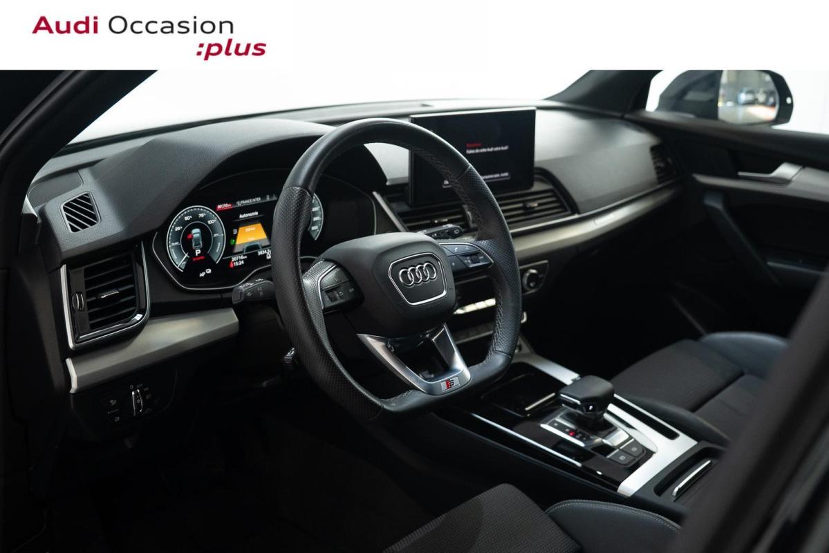 55 TFSIe 367 S tronic 7 Quattro S line, hybride essence électrique, noir métallisé, 28/12/2023, Ciel de pavillon en Tissu Noir, Lave-phares haute pression, Blocage électronique de différentiel EDS, Détecteur de pluie et de luminosité, Applications décoratives en Aluminium brossé mat, Tire Mobility System, Audi Sound System : amplificateurs 6 canaux, 10HP dont 1 central dans le tableau de bord et 1 subwoofer, puissance totale 180W, Volant Sport contour en Cuir style 3 branches aplati en bas avec multifonction plus avec palettes de changement de vitesses, S tronic : boîte séquentielle 7 vitesses à double embrayage avec commande électrohydraulique, Audi Virtual Cockpit combiné d?instruments entièrement numérique de 12.3" avec affichage haute résolution, Caméra de recul, Système de lecture des panneaux de signalisation par caméra, Pack Rangement et Coffre, Réception radio numérique DAB, Contrôle électronique de stabilisation ESC, Climatisation automatique Confort 3 zones, Banquette AR plus, Sièges Sport à l'AV, Vitrage acoustique pour les vitres de portières AV, Audi Hold Assist, Airbags grand volume pour conducteur et passager AV, Recommandation de repos, Câbles de recharge pour téléphone portable, compatibles iPhone et Android, Trousse de secours, triangle de présignalisation, Audi Drive Select, Protection antidémarrage électronique, Appel d'urgence avec service Audi connect + commande de véhicule, Navigation MMI plus avec MMI touch, Interface Bluetooth, Régulateur de vitesse, incluant limiteur de vitesse, Airbags latéraux AV avec système d'airbags de tête, Fixation pour sièges enfants ISOFIX et Top Tether pour les sièges extérieurs AR, Audi Parking system Plus, Rétroviseur intérieur jour/nuit automatique sans encadrement, Châssis de série, Ecrous de roues antivol, Antipatinage ASR pour une motricité optimale, empêche le patinage des roues motrices, Récupération d'énergie, permet de réaliser des économies de carburant en récupérant l'énergie de décélération et de freinage ; convertit l?énergie cinétique en énergie électrique utilisable en augmentant la tension du générateur durant les phases de décélération ou de freinage et soulage l'alternateur lorsque la voiture accélère de nouveau, Direction assistée électromécanique, Moulures de seuil avec insert en aluminium dans les ouvertures des portières AV, Clé Confort + Keyless go, Sièges AV réglables manuellement en hauteur et en profondeur ; réglage manuel des appuie-tête en hauteur, Vitres athermiques, Tapis de coffre à bagages, Préparation pour crochet d'attelage, Système Start/Stop, Outillage de bord, Audi Pre-Sense City, Vitrage privacy, Climatisation stationnaire, Audi connect avec carte SIM intégrée et licence d'utilisation pour 3 ans, Appui lombaire 4 axes pour les sièges AV: réglage électrique, horizontal, vertical, Commande de désactivation de l?airbag passager AV, Phares Matrix LED, feux AR à LED, Surfaces d?accentuation façon verre en Noir, 2 interfaces de charge USB pour les passagers AR sur la console centrale AR, Audi Phone Box light, Sellerie mixte Cuir/Tissu Séquence S line, Caméra multifonction, Ceintures de sécurité, automatiques à 3 points pour tous les sièges, contrôle de port de ceinture AV, Rétroviseurs extérieurs avec clignotants à LED intégrés couleur carrosserie, Quattro transmission intégrale permanente, Pare-soleil côtés conducteur et passager AV, Colonne de direction de sécurité, Sécurité enfants manuelle, Finition extérieure S line, Audi Smartphone Interface, Moulures de seuil avec insert en aluminium AV, éclairées, avec inscription S, Système de recharge e-tron compact, Identification du modèle selon le nouveau marquage de puissance, Tapis complémentaires AV et AR, Vide-poches dans les contre-portes AV/AR, Câble de charge pour chargeur ''e-tron compact'', 8 A, 1, 6 m, 8 A, type domestique, Accoudoir central confort AV avec inclinaison réglable et coulissant en longueur, Avertissement de sortie de voie, Jantes en aluminium coulé en style étoile à 5 bras 8Jx18, pneus 235/60 R18, Câble de charge pour station publique en courant alternatif pour charge en Mode 3 / Type 2 7, 2 kW AC, 32 A, Affichage de contrôle de pression des pneus, Coffre à ouverture et fermeture électriques, Pack Brillance Extérieur, Réservoir à carburant spécifique PHEV, Rétroviseurs extérieurs réglables et escamotables électriquement, jour/nuit automatique, dégivrants des 2 côtés et buses de lave-glaces dégivrantes pour le pare-brise, Sans barres de toit, Pack Eclairage d'ambiance, Toit panoramique en verre, Stores pare-soleil manuels pour les vitres de portes AR, Pack esthétique noir plus, Jantes en aluminium coulé style étoile 5 branches en V, Noir Anthracite, tournées brillant, 8Jx20", pneus 255/45 R20, Audi Phone Box avec charge du téléphone par induction, Etriers de freins laqués Rouge, Fixation pour sièges enfants ISOFIX pour le siège passager AV avec commande de sécurité enfant électrique sur les portières AR et commande de désactivation de l?airbag passager AV, Peinture métallisée Noir Mythic
