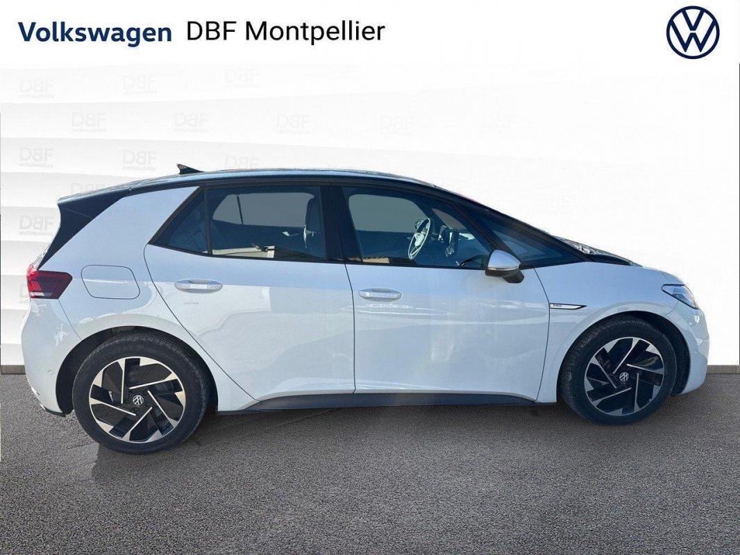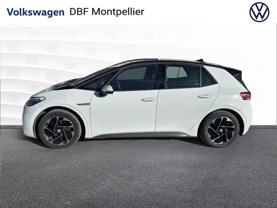 145 ch Pro, électrique, blanc métallisé, 27/08/2022, Pack Visibilité, Direction électromécanique à assistance variable en fonction de la vitesse, Clignotants confort, Indicateur de température extérieure avec avertisseur de gel, Pack Confort, Tapis de sol AV et AR, Alerte de perte de pression des pneus, Boîte à gants verrouillable et éclairée, Avertisseur sonore 1 ton, Eclairage à LED de la plaque d'immatriculation AR, Kit de dépannage : compresseur 12 V et produit d'étanchéité de pneu, Prise 12 V dans le coffre, Activation automatique du signal de détresse en cas de freinage d'urgence, Oeillets d'arrimage ISOFIX, Système de freinage anti multicollision : ce dispositif freine automatiquement le véhicule après un premier choc afin de limiter le risque de multicollision, Volant multifonctions réglable en hauteur et en profondeur, Protection antidémarrage, Détecteur de fatigue, 7 Airbags, Frein de stationnement électromécanique avec fonction d'immobilisation en pente Auto-Hold, Freins à disque à l'AV, Pochette de premiers secours, triangle de sécurité et gilet rétroréfléchissant, Freins à tambours à l' AR, Réception radio numérique DAB+, Car2X, ACC : Régulateur de vitesse adaptatif et prédictif, Turn Assist : Freinage d'urgence d'intersection, Câble de recharge Mode 3 - Type 2 pour borne de recharge, Système d'aide à l'écoconduite - Eco Assistance, Sélecteur de vitesse derrière le volant avec la touche de frein de stationnement électronique, Système de récupération d'énergie au freinage et à la décélération, Réglages de la charge via le système d'infodivertissement ou l'application We Connect ID, E-sound - son spécifique ID, Climatisation stationnaire, Lane Assist - Assistant au maintien dans la voie avec correction de trajectoire, Front Assist - Système de surveillance périmétrique avec fonctions de freinage d'urgence en ville et détection des piétons, Park Pilot : Système d'aide au stationnement AV et AR avec signaux sonores et visualisation de la distance des obstacles sur l'écran, Intervention de freinage automatique lors des manoevres, Carrosserie bicolore - Toit et hayon noir, Jantes en acier 7, 5J x 18'' avec enjoliveurs et pneumatiques 215/55 R18, Vitres AV et AR électriques avec dispositif antipincement, Sign Assist - Système de détection de la signalisation routière, Sièges AV réglables manuellement en hauteur, profondeur et inclinables, Avertissement de distance avec le véhicule précédent, Avertisseur sonore et lumineux pour ceintures non attachées à l'AV et à l'AR, Verrouillage centralisé avec télécommande à fréquence radio, 2 ports USB-C à l'AV, Lampes de lecture tactiles avec réglage manuel de l'intensité lumineuse, Pare-soleils AV avec miroir de courtoisie éclairé, Système de son 4+1 haut-parleurs, Climatiseur 1-Zone "Air Care Climatronic" avec mode recyclage de l'air ambiant, Dispositif électronique de démarrage sans clé "Keyless-Go" - Démarrage possible avec une simple pression sur la pédale de frein, App-Connect sans fil, ID. Display de 5, 3'' : L'ID. Display est un combiné d'instruments numérique doté d'un afficheur couleur TFT à haute résolution. En plus du tachymètre numérique, il est possible d'afficher des informations supplémentaires provenant des systèmes d'aide à la conduite, par la sélection de divers profils d'information., ID.Light - L'ID. Light est un concept d?éclairage intelligent qui vous fournit des informations complémentaires sur l'état du véhicule. Lors de la disponibilité de marche et pendant la conduite, des informations complémentaires sur la situation de conduite actuelle sont fournies par l'ID. Light, Ecran central tactile de 10'' personnalisable, Commande Vocale intuitive -"Bonjour ID." - Certaines fonctions peuvent être exécutées grâce à la commande vocale, Système d'appel d'urgence - eCal, Appui-tête réglables en hauteur sur les sièges AV et AR, Gestion des paramètres de confidentialité liés à la eSIM et à We Connect ID., Services connectés "We Connect ID." 36 mois, Pack Infotainment, Phares LED et feux AR à LED, Réglage des phares tactile, Galerie porte-bagages, Accoudoir pour les sièges AV, Peinture Unie Gris Lunaire/Toit Noir, Portes AR avec sécurité enfants, Ceintures de sécurité automatiques AV trois points à enrouleur avec prétensionneurs et AR trois points à enrouleur, Correcteur électronique de trajectoire ESP, Amplificateur de freinage d'urgence AFU, Servofrein électromécanique eBKV, Freinage mixte BKU, système d'antiblocage des roues ABS, blocage électronique de différentiel EDS, répartiteur lectronique de freinage EBV, antipatinage électronique ASR, régulateur électronique de couple MSR, assistance au contrebraquage, Programme électronique de stabilisation ESC, Système agissant comme un différentiel autobloquant électronique permettant une meilleure motricité en courbe grâce à une répartition optimale de la puissance et du couple sur les roues AR XDS, Système de refroidissement liquide, Chargeur embarqué pour prise Type 2 : 11 kW AC, Système d'appel en cas de panne B-Call, Intérieur Style avec habillage et volant Noir et avec sellerie en ArtVelours et similicuir, tableau de bord personnalisable, revêtement du tableau de bord et des portes soft-touch, éclairage d?ambiance personnalisable, pédalier en acier inoxydable avec symboles Play et Pause, banquette AR 3 places rabattable avec trappe à skis, sièges AV réglables en hauteur, Climatiseur 1-Zone "Climatronic", Volant multifonction à réglage mécanique en hauteur et en longueur, Câble de recharge Mode 2 - Type 2 pour prise domestique, Jantes 18''"East Derry" Argent Pneumatiques 215/55 R18, Pack Assistance, Peinture Métallisée Blanc Glacier/Toit Noir