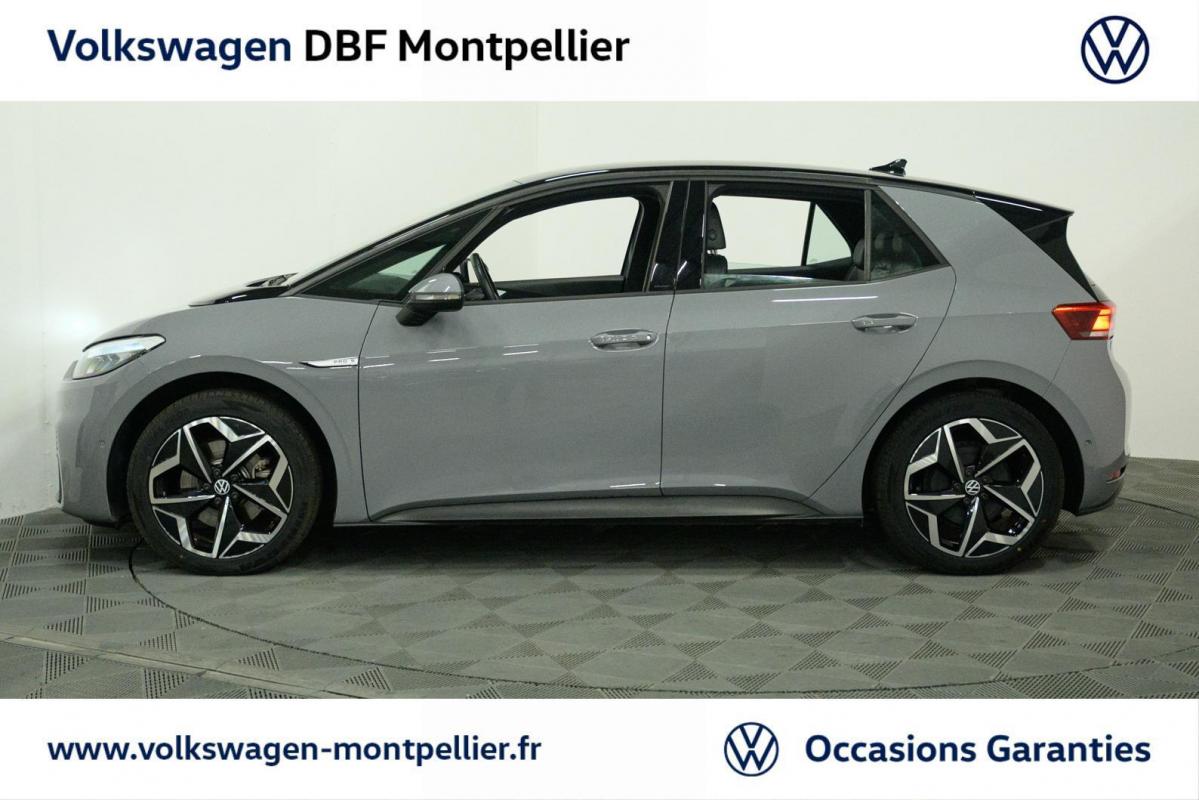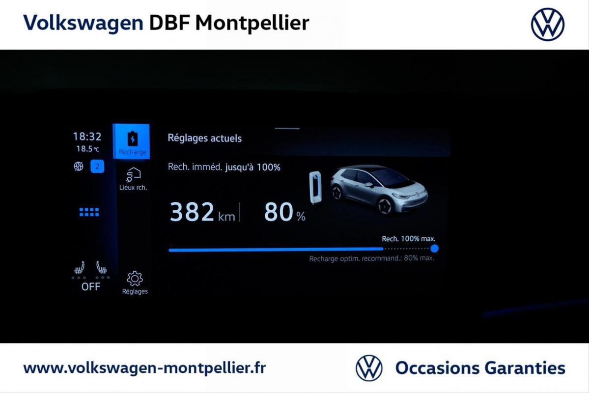 204 ch Pro S Business, électrique, gris clair, 09/09/2022, Pack Visibilité, Direction électromécanique à assistance variable en fonction de la vitesse, Clignotants confort, Indicateur de température extérieure avec avertisseur de gel, Pack Confort, Tapis de sol AV et AR, Alerte de perte de pression des pneus, Boîte à gants verrouillable et éclairée, Avertisseur sonore 1 ton, Eclairage à LED de la plaque d'immatriculation AR, Prise 12 V dans le coffre, Activation automatique du signal de détresse en cas de freinage d'urgence, Oeillets d'arrimage ISOFIX, Système de freinage anti multicollision : ce dispositif freine automatiquement le véhicule après un premier choc afin de limiter le risque de multicollision, Volant multifonctions réglable en hauteur et en profondeur, Protection antidémarrage, Détecteur de fatigue, 7 Airbags, Frein de stationnement électromécanique avec fonction d'immobilisation en pente Auto-Hold, Freins à disque à l'AV, Pochette de premiers secours, triangle de sécurité et gilet rétroréfléchissant, Freins à tambours à l' AR, Réception radio numérique DAB+, Car2X, ACC : Régulateur de vitesse adaptatif et prédictif, Turn Assist : Freinage d'urgence d'intersection, Jantes 18''"East Derry" Argent Pneumatiques 215/55 R18, Câble de recharge Mode 2 - Type 2 pour prise domestique, Câble de recharge Mode 3 - Type 2 pour borne de recharge, Système d'aide à l'écoconduite - Eco Assistance, Sélecteur de vitesse derrière le volant avec la touche de frein de stationnement électronique, Système de récupération d'énergie au freinage et à la décélération, Réglages de la charge via le système d'infodivertissement ou l'application We Connect ID, E-sound - son spécifique ID, Climatisation stationnaire, Lane Assist - Assistant au maintien dans la voie avec correction de trajectoire, Front Assist - Système de surveillance périmétrique avec fonctions de freinage d'urgence en ville et détection des piétons, Park Pilot : Système d'aide au stationnement AV et AR avec signaux sonores et visualisation de la distance des obstacles sur l'écran, Intervention de freinage automatique lors des manoevres, Carrosserie bicolore - Toit et hayon noir, Vitres AV et AR électriques avec dispositif antipincement, Sign Assist - Système de détection de la signalisation routière, Sièges AV réglables manuellement en hauteur, profondeur et inclinables, Avertissement de distance avec le véhicule précédent, Avertisseur sonore et lumineux pour ceintures non attachées à l'AV et à l'AR, Verrouillage centralisé avec télécommande à fréquence radio, 2 ports USB-C à l'AV, Lampes de lecture tactiles avec réglage manuel de l'intensité lumineuse, Pare-soleils AV avec miroir de courtoisie éclairé, Système de son 4+1 haut-parleurs, Climatiseur 1-Zone "Air Care Climatronic" avec mode recyclage de l'air ambiant, Dispositif électronique de démarrage sans clé "Keyless-Go" - Démarrage possible avec une simple pression sur la pédale de frein, App-Connect sans fil, ID. Display de 5, 3'' : L'ID. Display est un combiné d'instruments numérique doté d'un afficheur couleur TFT à haute résolution. En plus du tachymètre numérique, il est possible d'afficher des informations supplémentaires provenant des systèmes d'aide à la conduite, par la sélection de divers profils d'information., ID.Light - L'ID. Light est un concept d?éclairage intelligent qui vous fournit des informations complémentaires sur l'état du véhicule. Lors de la disponibilité de marche et pendant la conduite, des informations complémentaires sur la situation de conduite actuelle sont fournies par l'ID. Light, Ecran central tactile de 10'' personnalisable, Commande Vocale intuitive -"Bonjour ID." - Certaines fonctions peuvent être exécutées grâce à la commande vocale, Système d'appel d'urgence - eCal, Appui-tête réglables en hauteur sur les sièges AV et AR, Gestion des paramètres de confidentialité liés à la eSIM et à We Connect ID., Services connectés "We Connect ID." 36 mois, Pack Infotainment, Phares LED et feux AR à LED, Réglage des phares tactile, Galerie porte-bagages, Accoudoir pour les sièges AV, Peinture Unie Gris Lunaire/Toit Noir, Portes AR avec sécurité enfants, Ceintures de sécurité automatiques AV trois points à enrouleur avec prétensionneurs et AR trois points à enrouleur, Correcteur électronique de trajectoire ESP, Amplificateur de freinage d'urgence AFU, Servofrein électromécanique eBKV, Freinage mixte BKU, système d'antiblocage des roues ABS, blocage électronique de différentiel EDS, répartiteur lectronique de freinage EBV, antipatinage électronique ASR, régulateur électronique de couple MSR, assistance au contrebraquage, Programme électronique de stabilisation ESC, Système agissant comme un différentiel autobloquant électronique permettant une meilleure motricité en courbe grâce à une répartition optimale de la puissance et du couple sur les roues AR XDS, Système de refroidissement liquide, Chargeur embarqué pour prise Type 2 : 11 kW AC, Pack Assistance, Système d'appel en cas de panne B-Call, Intérieur Style avec habillage et volant Noir et avec sellerie en ArtVelours et similicuir, tableau de bord personnalisable, revêtement du tableau de bord et des portes soft-touch, éclairage d?ambiance personnalisable, pédalier en acier inoxydable avec symboles Play et Pause, banquette AR 3 places rabattable avec trappe à skis, sièges AV réglables en hauteur, Jantes 18''"East Derry" bicolore Argent Pneumatiques 215/55 R18, Climatiseur 1-Zone "Climatronic", Volant multifonction à réglage mécanique en hauteur et en longueur