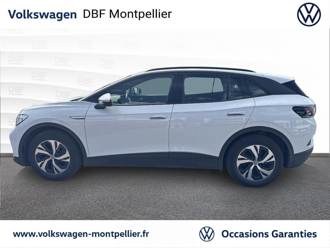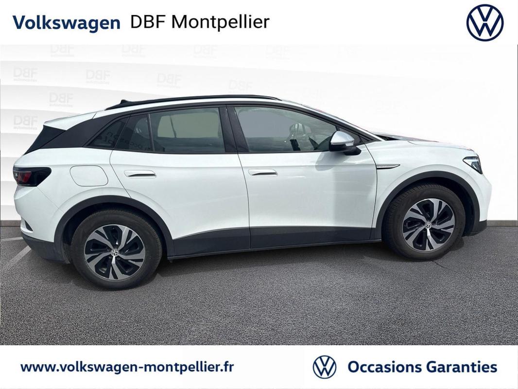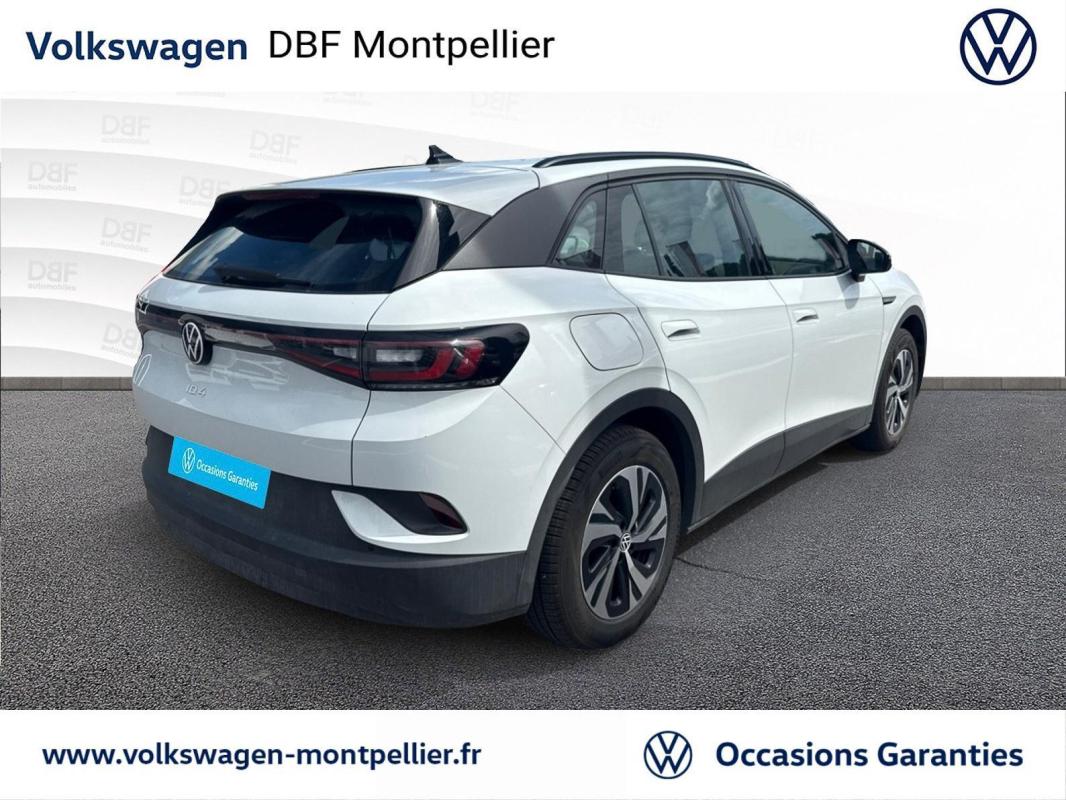 149 ch Pure, électrique, blanc métallisé, 18/04/2023, Pack Visibilité, Direction électromécanique à assistance variable en fonction de la vitesse, Clignotants confort, Indicateur de température extérieure avec avertisseur de gel, Pack Confort, Tapis de sol AV et AR, Alerte de perte de pression des pneus, Boîte à gants verrouillable et éclairée, Avertisseur sonore 1 ton, Eclairage à LED de la plaque d'immatriculation AR, Prise 12 V dans le coffre, Activation automatique du signal de détresse en cas de freinage d'urgence, Oeillets d'arrimage ISOFIX, Protection antidémarrage, Pare-brise en verre athermique, chauffant avec isolation phonique renforcée, Détection de fatigue, 7 Airbags, Interface téléphone Bluetooth, Rétroviseur intérieur à réglage jour/nuit automatique, Réception de radio numérique DAB+, Pochette de premiers secours, triangle de sécurité et gilet rétroréfléchissant, Peinture unie Gris Lunaire, Rétroviseur extérieurs rabattables et réglables électriquement avec fonction dégivrage et abaissement automatique, Car2X, Turn Assist : Freinage d'urgence d'intersection, Câble de recharge Mode 3 - Type 2 pour borne de recharge, Système d'aide à l'écoconduite - Eco Assistance, Sélecteur de vitesse derrière le volant avec la touche de frein de stationnement électronique, Système de récupération d'énergie au freinage et à la décélération, E-sound - son spécifique ID, Climatisation stationnaire, Lane Assist - Assistant au maintien dans la voie avec correction de trajectoire, Front Assist - Système de surveillance périmétrique avec fonctions de freinage d'urgence en ville et détection des piétons, Park Pilot : Système d'aide au stationnement AV et AR avec signaux sonores et visualisation de la distance des obstacles sur l'écran, Intervention de freinage automatique lors des manoevres, Vitres AV et AR électriques avec dispositif antipincement, Sign Assist - Système de détection de la signalisation routière, Avertissement de distance avec le véhicule précédent, Avertisseur sonore et lumineux pour ceintures non attachées à l'AV et à l'AR, 7 Airbags : Airbags frontaux AV conducteur et passager, Airbags latéraux à l'AV, airbags interactif à l'AV et avec airbags de tête à l'AV et à l'AR, Airbag central situé sur le côté droit du siège conducteur, permet la protection des chocs entre les occupants des sièges AV en cas de collision latérale ou de retournement, Kit de dépannage : compresseur 12 volts et produit d'étanchéité de pneu, Verrouillage centralisé avec télécommande à fréquence radio, 2 ports USB-C à l'AV, Lampes de lecture tactiles avec réglage manuel de l'intensité lumineuse, Pare-soleils AV avec miroir de courtoisie éclairé, Tableau de bord personnalisable, Revêtement du tableau de bord et des portes soft-touch, Eclairage d'ambiance personnalisable, Banquette AR 2/3 1/3 avec accoudoir central et trappe à skis, Pédalier en acier inoxydable avec symboles "Play & Pause", Dispositif électronique de démarrage sans clé "Keyless-Go" - Démarrage possible avec une simple pression sur la pédale de frein, App-Connect sans fil, ID. Display de 5, 3'' : L'ID. Display est un combiné d'instruments numérique doté d'un afficheur couleur TFT à haute résolution. En plus du tachymètre numérique, il est possible d'afficher des informations supplémentaires provenant des systèmes d'aide à la conduite, par la sélection de divers profils d'information., ID.Light - L'ID. Light est un concept d?éclairage intelligent qui vous fournit des informations complémentaires sur l'état du véhicule. Lors de la disponibilité de marche et pendant la conduite, des informations complémentaires sur la situation de conduite actuelle sont fournies par l'ID. Light, Ecran central tactile de 10'' personnalisable, Commande Vocale intuitive -"Bonjour ID." - Certaines fonctions peuvent être exécutées grâce à la commande vocale, Système d'appel d'urgence - eCal, Système de son 6+1 haut-parleurs, Appui-tête réglables en hauteur sur les sièges AV et AR, Gestion des paramètres de confidentialité liés à la eSIM et à We Connect ID., Jantes en alliage 18" Falun bi-colore argen/noir, pneus 235/60 R18 avec écrous antivol, Services connectés "We Connect ID." 36 mois, Carrosserie unie et rampes de pavillon noires, Sellerie en ArtVelours et similicuir, bicolore et dossier perforé "ID.", Réglage des phares tactile, Système de Freinage anti-multi collision Ce dispositif freine automatiquement le véhicule après un premier choc afin de limiter le risque de multicollision, Accoudoir pour les sièges AV, Réglages de la charge via le système d?infodivertissement ou l'application We Connect ID., Projecteurs LED et feux arrière à LED, Volant multifonction à réglage mécanique en hauteur et en longueur, Freins à disques à l'AV et freins à tambours à AR, Portes AR avec sécurité enfants, Ceintures de sécurité automatiques AV trois points à enrouleur avec prétensionneurs et AR trois points à enrouleur, Correcteur électronique de trajectoire ESP, Amplificateur de freinage d'urgence AFU, Servofrein électromécanique eBKV, Freinage mixte BKU, système d'antiblocage des roues ABS, blocage électronique de différentiel EDS, répartiteur lectronique de freinage EBV, antipatinage électronique ASR, régulateur électronique de couple MSR, assistance au contrebraquage, Programme électronique de stabilisation ESC, Système agissant comme un différentiel autobloquant électronique permettant une meilleure motricité en courbe grâce à une répartition optimale de la puissance et du couple sur les roues AR XDS, Système de refroidissement liquide, Chargeur embarqué pour prise Type 2 : 7, 2 kW AC, Tableau de bord personnalisable, Sièges AV réglables manuellement en profondeur et inclinables, Frein de stationnement électromécanique avec fonction d?immobilisation "Auto-Hold", Volant capacitif multifonction, ID.