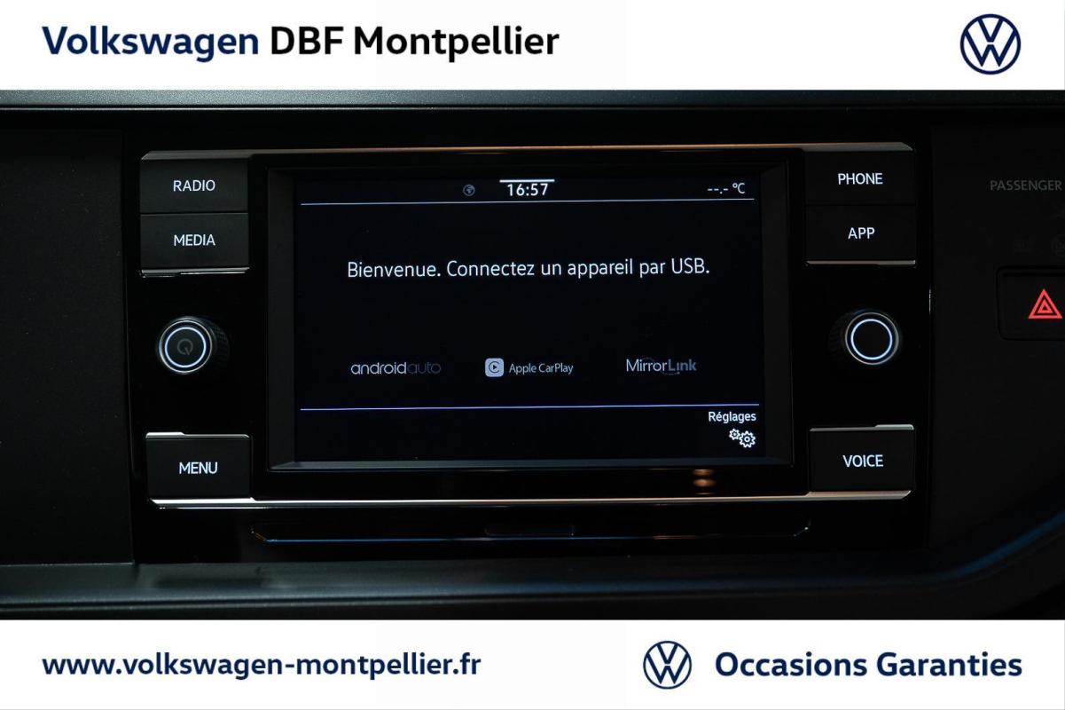1.0 TSI 95 S&S BVM5, essence, bleu, 10/08/2023, 2 interfaces USB-C à l'AV, Airbags latéraux AV et airbag central, Airbags rideaux AV/AR, Alerte de perte de pression des pneus, Antenne AR de pavillon, Anti-démarrage électronique, Cache-bagages, Capteur de pluie avec essuie glace automatique, Ciel de pavillon couleur céramique, Climatisation manuelle "Climatic", Câble adaptateur USB-C vers USB-A, Direction assistée, Disques de frein à l'AV et freins à tambour à l'AR, Dossier AR non divisé et rabattable, Déflecteur de toit intégré, E-call: Appel d'urgence, Eclairage du coffre à bagages, Feux AR de brouillard, Filtre à charbon actif avec aspiration d?air frais, Grille de calandre avec baguette chromée, Interface Bluetooth pour téléphone portable, Lampes de lecture AV/AR, Lève-vitres électrique AV et AR, Pare chocs peints dans la couleur de carrosserie, Park Pilot - Aide au stationnement AV et AR, Porte-boissons : 2 à l'AV, Prise 12V AV, Projecteurs à LED et feux de jour à LED Eco, Préparation pour "We Connect" et "We Connect Plus", Réception de radio numérique DAB+, Régulateur de vitesse y compris limiteur de vitesse, Rétroviseur extérieur asphérique côté conducteur, Rétroviseur intérieur à réglage jour/nuit automatique, Rétroviseurs extérieurs rabattables électriquement, Sellerie en tissu "Polo", Siège conducteur AV réglable en hauteur, Système de récupération de l'énergie en décélération, Témoin d'alerte pour niveau de liquide lave-glace, Vitres athermiques teintées vertes, Airbags frontaux AV conducteur et passager, Applications décoratives "Licorice Black" sur le tableau de bord, Appuis-tête sur la banquette AR, Bacs de rangement dans toutes les portes, à l?AV avec porte-boisson, Boitiers de rétroviseurs extérieurs et poignées de porte dans la teinte du véhicule, Ceintures de sécurité AV 3 points à enrouleur avec prétensionneur, Digital Cockpit : combiné d?instruments entièrement digital de 8 pouces, Essuie-glaces AV/AR avec commande d'intermittence et lave-glace, Fatigue Détection : système de détection de fatigue du conducteur, Kit de dépannage en cas de crevaison incluant compresseur 12 V et produit colmatant, Lane Assist - Assistant au maintien dans la voie avec correction de trajectoire, Miroirs de courtoisie éclairés dans les pare-soleil pour conducteur et passager, Plafonnier à temporisation à l'AV avec contacteur de portière, Radio "Composition" avec écran couleur tactile 6, 5" et 4 HP, Rétroviseurs extérieurs réglables électriquement et dégivrants, Système "Start-Stop" de coupure-redémarrage du moteur à l?arrêt, Tableau de bord avec revêtement moussé en partie supérieure, Témoins de contrôle et indicateur d'intervalle de révision, Verrouillage centralisé à distance, 2 clés pliantes de radiocommande fournies, Volant multifonctions réglable en hauteur et en profondeur, Allumage automatique des projecteurs avec feux de jour à LED et fonction "Coming/Leaving Home", Avertisseur sonore et lumineux de non-extinction des phares et de non bouclage des ceintures de sécurité à l'AV et à l'AR, Front Assist : système de surveillance périmétrique avec fonction de freinage d?urgence en ville et détection des piétons et cyclistes, Jantes en acier 5, 5 J x 15" avec enjoliveurs intégraux, pneumatiques 185/65 R15 à résistance au roulement optimisée, sans écrous antivol, 4 jantes en acier 5, 5J x 15 avec enjoliveurs intégraux, pneumatiques 185/65 R15 à résistance au roulement optimisée, sans écrous antivol, Système de freinage anti multicollision : ce dispositif freine automatiquement le véhicule après un premier choc afin de limiter le risque de multicollision, OEillets d?arrimage ISOFIX, App-Connect filaire affichage et contrôle via l?écran tactile du véhicule, du contenu, des fonctions et des applications compatibles présents sur le Smartphone (compatibilité avec les systèmes Apple CarPlay et Android Auto, Correcteur électronique de trajectoire ESP avec amplificateur de freinage d?urgence, système d?antiblocage des roues ABS, antipatinage électronique ASR, blocage électronique de différentiel EDS, régulateur électronique de couple d?inertie MSR, aide au démarrage en côte ?Hill-Hold?, Peinture métallisée Bleu Récif, Extension de garantie 3 ans ou 60000 kms, Roue de secours acier avec pneus normal 15", outillage de bord et cric