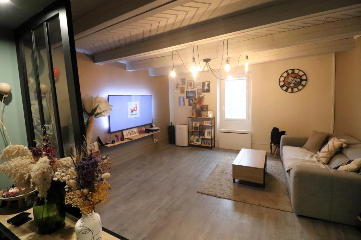 Au premier étage un grand salon ouvert sur la cuisine équipée et aménagée, une salle à manger indépendante, d'une chambre, d'une salle d'eau et d'un wc.