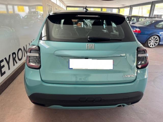 T-Gen 3 1.2 Hybrid 110ch eDCT6, hybride, vert, 04/04/2025, 2 appuis-tête AR, 6 airbags, ABS, Alerte franchissement de ligne, Antenne de toit type aileron de requin noir brillant, Banquette AR rabattable 60/40, Bouton d'appel d'urgence, Boîte de vitesse automatique 6 rapports, Canule d'échappement côté droit, Chargeur USB de type A et USB de type C, Climatisation manuelle, Combiné d'instrumentation numérique 7'', Connectivité Smartphone Apple CarPlay et Android Auto sans fil, Contrôle de la pression des pneus, Contrôle de la traction (TCS), Coques de rétroviseurs extérieurs noires, Direction assistée, Détecteurs de pluie et luminosité, ESP, Feux AR à LED, Feux de jour à LED, Frein de stationnement mécanique, Freinage autonome d'urgence avec détection de piéton et de cycliste, Jantes acier 16" avec enjoliveurs bicolores, Kit anti-crevaison Fix&Go, Logo "HYBRID" sur le hayon de coffre, Palettes de changement de rapports au volant, Pare-soleil avec miroir de courtoisie, Planche de bord noire mat, Poignées de portes intérieurs noires mat, Prise 12V AV, Projecteurs full LED 'Infinity', Prédisposition attelage, Radar de stationnement AR, Rappel du port de la ceinture de sécurité (1ère et 2ème rangées), Reconnaissance des pannneaux, Régulateur-limiteur de vitesse, Répétiteur de clignotant halogène, Rétroviseur intérieur manuel jour/nuit, Rétroviseurs extérieurs à réglage électrique, Sellerie en tissu seaqual avec monogramme FIAT, Services connectés UConnect Services, Siège conducteur réglable en hauteur, Siège conducteur à réglage manuel à 6 positions, Siège passager à réglage manuel à 4 positions, Spots de lecture AV et AR halogènes, Système ISOFIX siège AV passager et banquette AR, Système Uconnect 10, 25", Système audio à 4 HP, Tunnel central en position basse, Verrouillage centralisé, Vitres AR électriques, Vitres AV électriques, Volant Soft Touch, Peinture métallisée Vert Sky, Caméra de recul 180° (Pack Confort), Chargeur smartphone a induction (Pack Confort), Climatisation automatique (Pack Confort), Frein à main électrique (Pack Confort), Ouverture et démarrage sans clé (Pack Confort), Radars de stationnement 360° (Pack Confort), Système audio à 6 HP (Pack Confort), Système de navigation (Pack Confort)