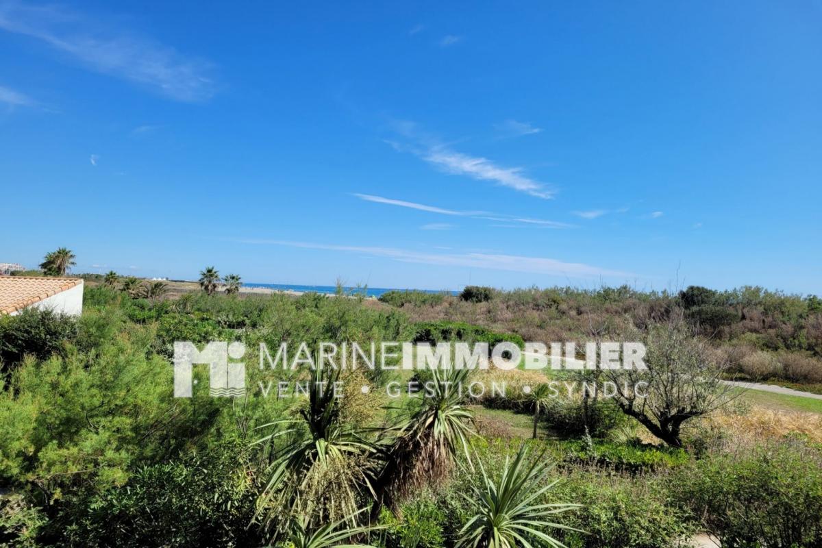 Dans une résidence en front de mer avec belle piscine, studio cabine meublé traversant de 21.50 m², il dispose d'un salon avec coin cuisine équipé donnant sur une loggia de 5.25 m² vue mer et jardin , une salle de douche avec Wc, une cabine avec fenêtre.