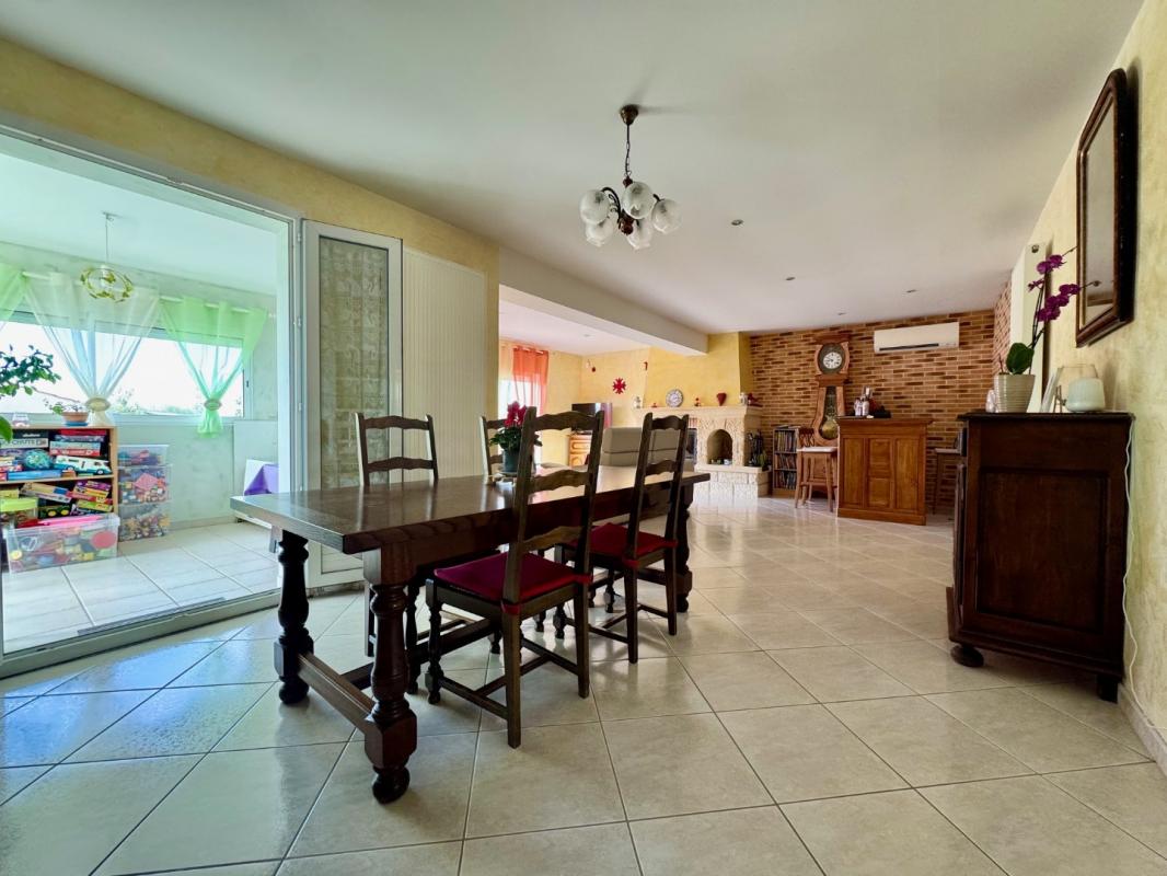 -Une grande pièce de vie lumineuse et climatisée avec insert et vue sur la piscine, prolongée par une véranda de 9m2.