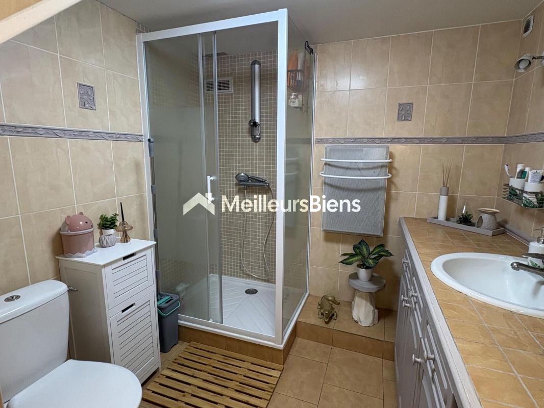 À l'étage, la maison dispose de quatre chambres, d'une grande salle de bains et d'un toilette indépendant, offrant un agencement adapté à la vie quotidienne.
