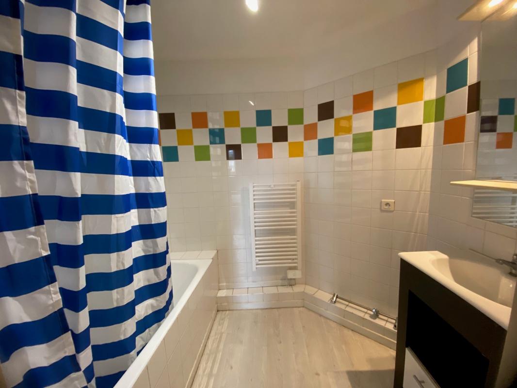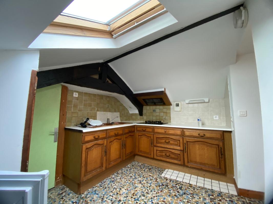 Appartement situé en centre-ville, au 3ème étage, comprenant : une entrée avec wc séparés, un séjour avec placard, une cuisine séparée aménagée et équipée (plaques, hotte et frigo top), un débarras, une chambre avec placards et une salle de bains.