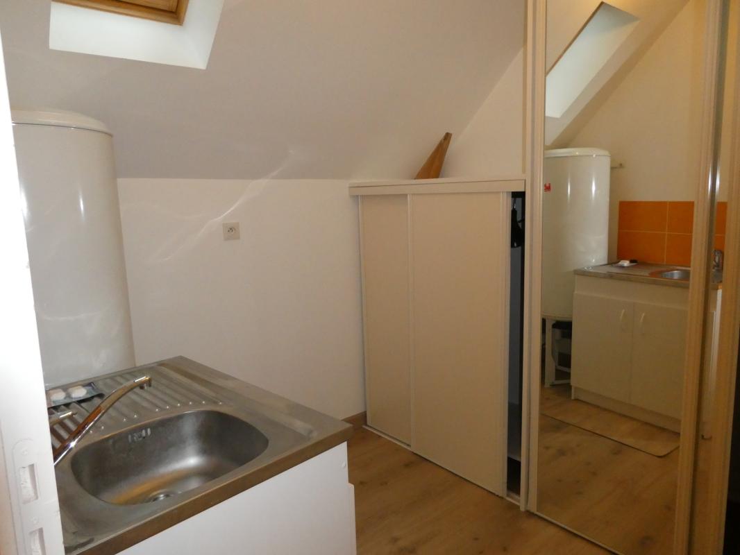 Appartement en duplex plein centre comprenant: une entrée, une belle pièce de vie avec coin cuisine meublé et équipé (plaques, four, hotte, frigo avec partie congélateur, lave-vaisselle), une lingerie, wc ,à l'étage, une chambre avec placards, une salle d'eau avec wc.