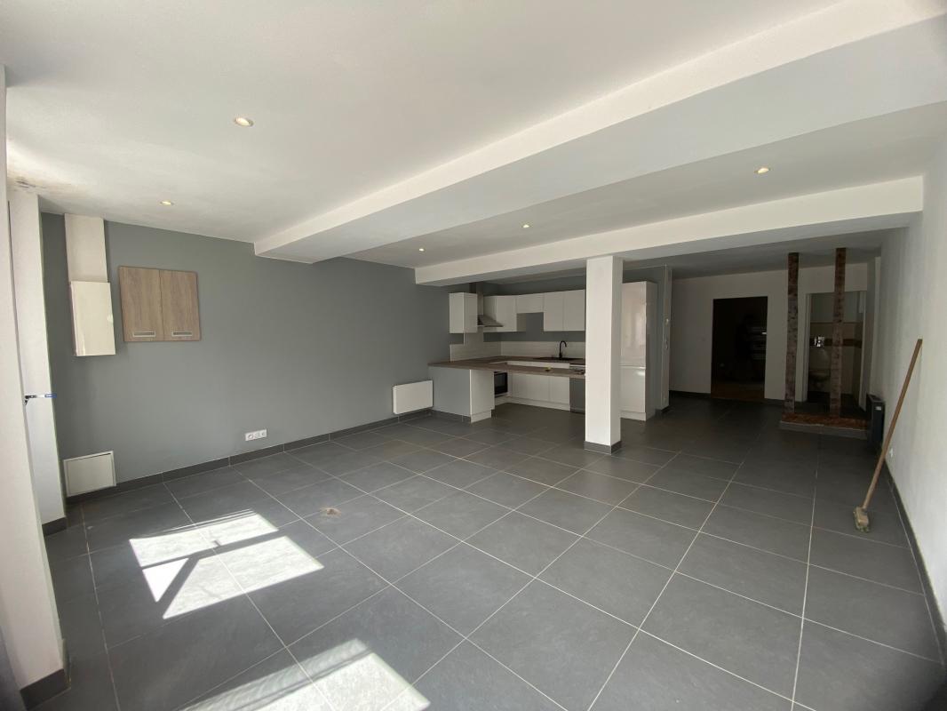 Maison entièrement rénovée, proche de toutes commodités, comprenant : pièce de vie, cuisine aménagée et équipée (plaque, four, hotte, lave-vaisselle), une chambre avec salle d'eau, WC. A l'étage : trois chambres, bureau, salle d'eau avec WC.