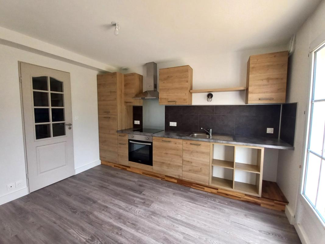 Maison entierement rénovée comprenant: un hall d'entrée avec placard, un wc, un grand séjour traversant, une cuisine aménagée et équipée (plaque, hotte, lave-vaisselles, frigo, partie congélateur), à l'étage un couloir desservant 3 chambres dont 2 avec placard, une salle de bains, wc séparés.