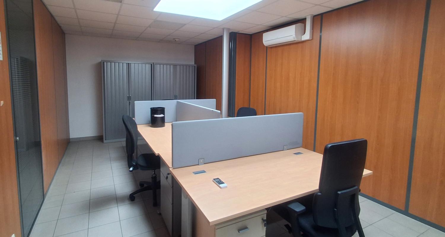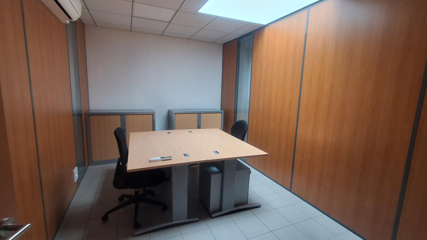 Nous vous proposons à la location un ensemble de bureaux climatisés comprenant un espace accueil-cafétéria, une salle de réunion, 10 bureaux, sanitaires. Equipements : chaque bureau est meublé, le coin cafeteria est meublé. Parking extérieur avec 15 places privatives.L'ensemble sur environ 300 m2. 'Les informations sur les risques auxquels ce bien est exposé sont disponibles sur le site Géorisques : www.georisques.gouv.fr'.