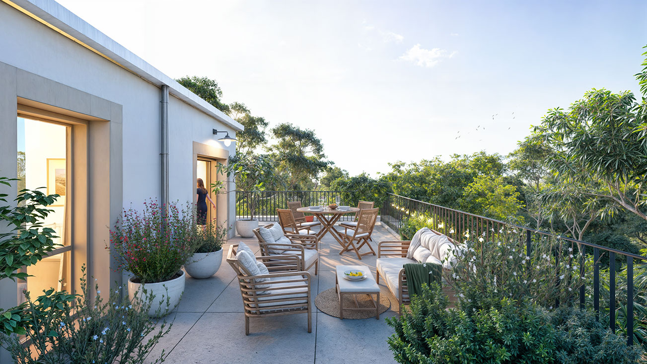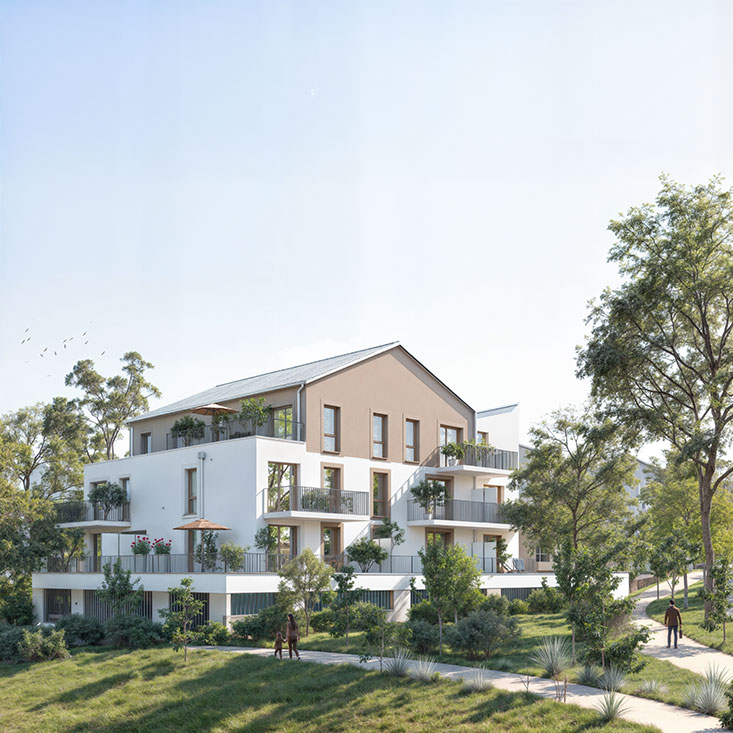 Tous les appartements bénéficient de prestations de qualité et de beaux espaces extérieurs : terrasse, balcon ou jardin privatif pour les rez-de-chaussée. L'orientation de chaque logement a été pensée pour maximiser l'exposition au soleil, dans un environnement paysager soigné.