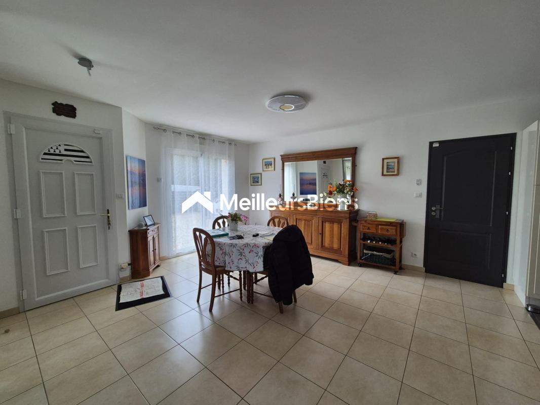 Cette maison récente offre de plain-pied une belle entrée avec placard, grand salon / séjour lumineux, cuisine ouverte aménagée et équipée, 3 chambres avec dressing, une salle de bain avec douche et baignoire, wc, garage, buanderie, carport.