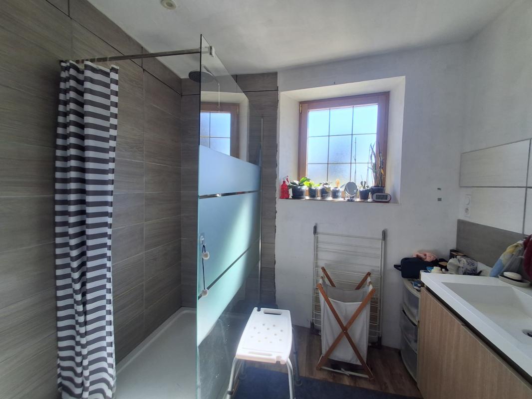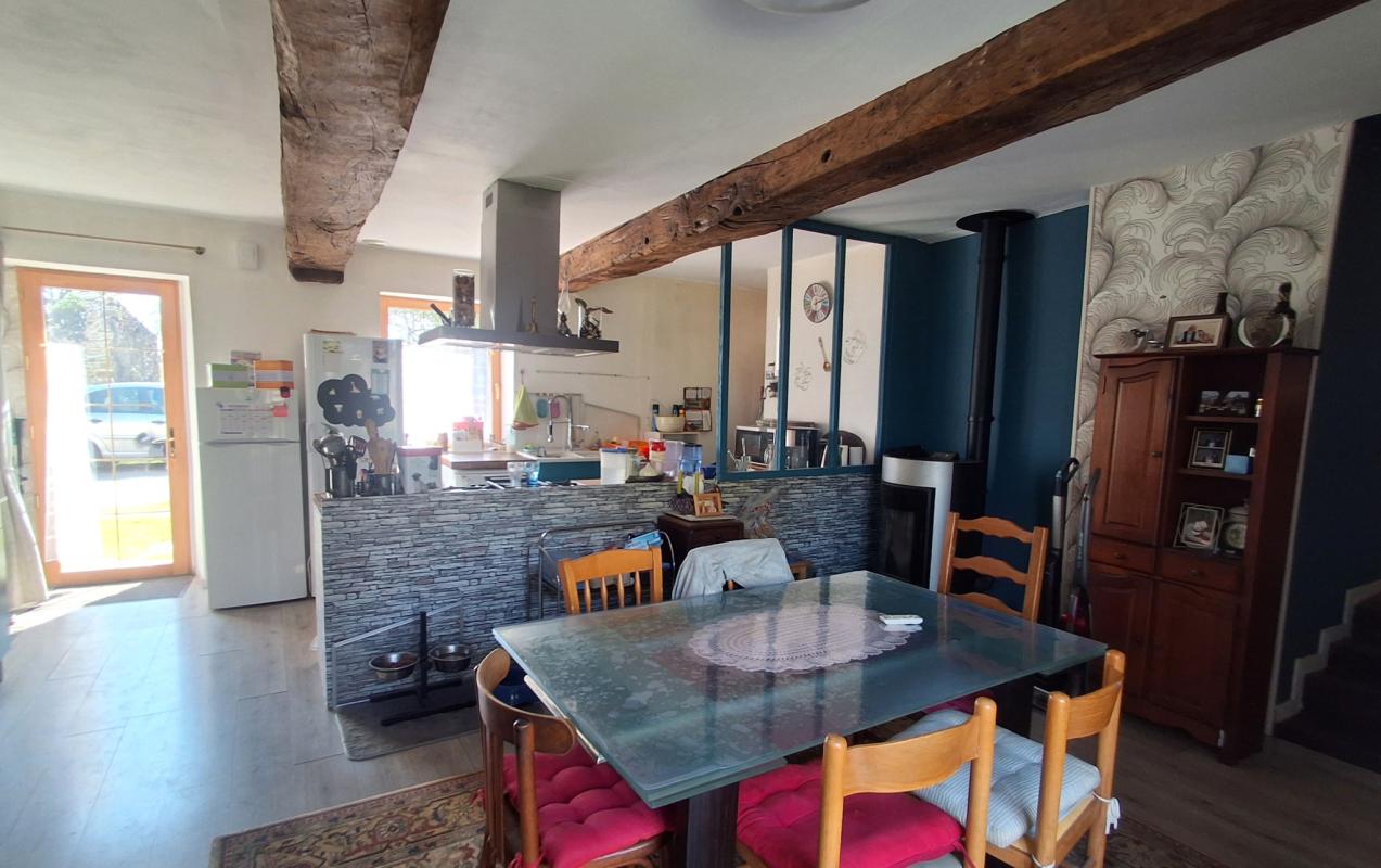 Au calme de son hameau, belle opportunité pour cette maison en pierres de plain-pied comprenant une cuisine ouverte sur salle à manger avec poêle à granules et accès jardin, un salon-séjour, une arrière cuisine, une chambre, une salle d'eau, un atelier, une cave, un cellier, wc. Greniers aménageables au dessus. L'ensemble sur terrain de 3642 m2.