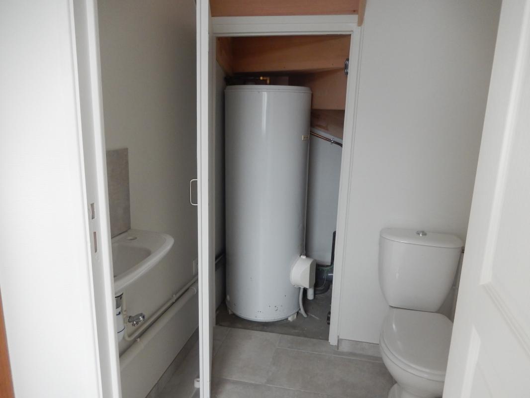 - à l'étage : deux chambres avec placards, salle d'eau avec douche, meuble vasque et WC ;