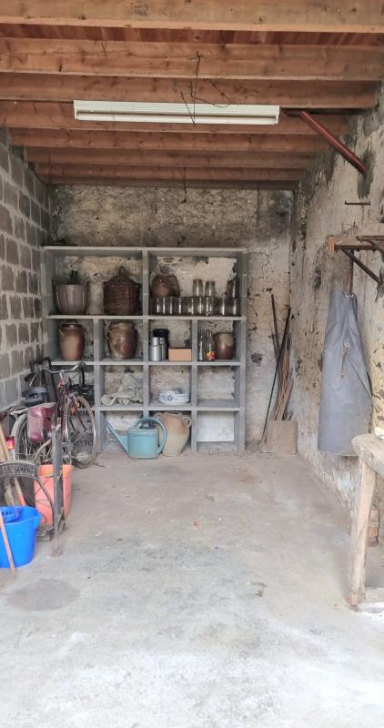 - Petit garage sur chape ciment, accessible par l'extérieur avec casiers béton et portail PVC 3 vantaux ;