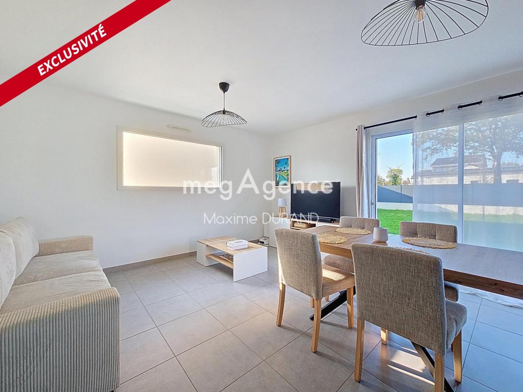 Édifiée sur un terrain de 383 m², cette maison récente de 68 m² se distingue par sa lumineuse pièce de vie exposée sud-ouest créant une atmosphère chaleureuse et conviviale. La cuisine aménagée et équipée s'intègre harmonieusement à l'espace de vie, offrant confort et praticité au quotidien.