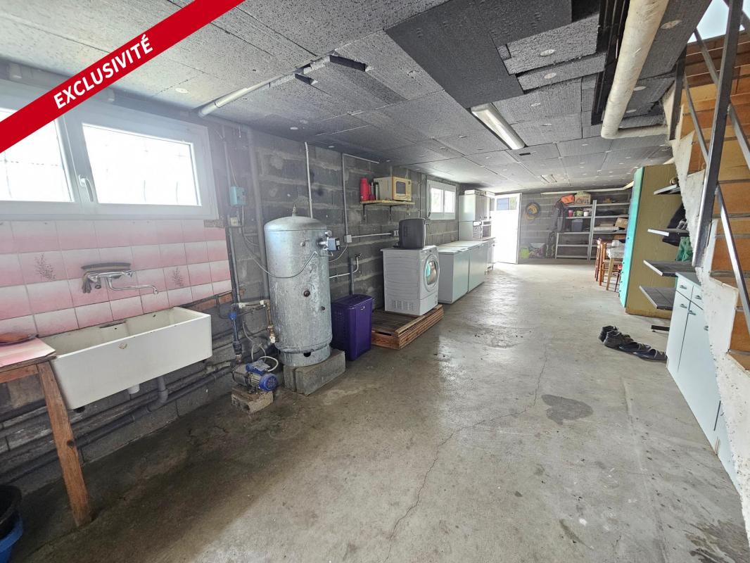 Le sous-sol total de 145 m² environ vient compléter cet ensemble avec un double garage, un atelier, un débarras, une cuisine d'été, une cave et un WC. À l'extérieur, une dépendance ajoute encore davantage de potentiel.