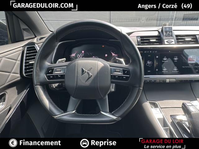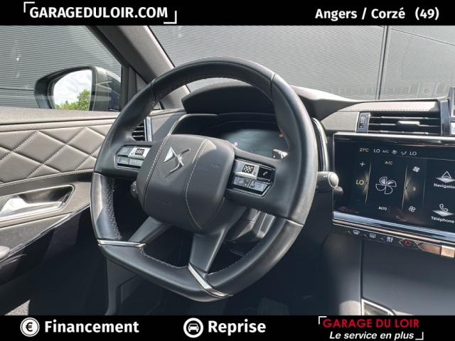 7 BlueHDi 130 EAT8 Rivoli, diesel, bleu, 26/03/2024, ABS avec répartiteur électronique de freinage (REF) et Aide au Freinage d'Urgence (AFU) + Aide au démarrage en pente, Accoudoir central AR, Accoudoir central en Toile DS avec rangement, Accès et démarrage mains libres, Aide au stationnement AV/AR et Caméra de recul, Airbags frontaux (passager déconnectable), latéraux AV, rideaux AV/AR, Alerte Attention Conducteur, Alerte de franchissement involontaire de ligne, Allumage automatique des feux Avec commutation automatique des feux de route, Badge DS chromé sur le capot, Banquette AR 2/3 - 1/3, Barres de toit aluminium, Boîte à gants ventilée, Centre de roue Noir brillant, Climatisation automatique bi-zone, Combiné numérique 12.3" HD, Contrôle électronique de stabilité de l'attelage, Contrôle dynamique de stabilité (ESP) avec antipatinage des roues (ASR), DS IRIS SYSTEM Système d'infotainment personnalisable de dernière génération, DS LIGHT VEIL Feux de jour à LED, DS PIXEL LED VISION 3.0, DS Wings chromées, Double antennes, Détection de sous-gonflage, Eclairage d'accueil et d'accompagnement, Eclairage d'ambiance à LED, Eclairage de cave à pieds à LED, Ecran tactile capacitif 12?? HD, Entourage des vitres latérales chromé, Essuie-vitre AV à déclenchement et cadencement automatiques + Buses de lavage, Feux AR 3D (traitement écailles) Avec indicateur de changement de direction défilant, Fixations ISOFIX à la place passager AV et aux places latérales AR Inclut TOP TEATHER, Frein de stationnement électrique automatique, Freinage d'urgence automatique piloté par caméra et radar, Grille de calandre noir brillant avec pampilles chromées, Jantes alliage 19'' EDINBURGH, pneus 235/50 R19 V, Jonc supérieur de volet Noir brillant avec lettrage 'DS AUTOMOBILES' chromé, Jonc sur jupe AR chromé, Kit de dépannage, Lunette AR chauffante, Lève-vitres AV/AR électriques, séquentiels et avec fonction antipincement, Mirror Screen sans fil via Wifi Compatible Apple CarPlay et Android Auto, Monogrammes AR chromé, Montre rotative B.R.M. R180, Navigation 3D Connectée Information trafic en temps réel, prix des carburants, parkings et Zones de Danger.3 ans inclus, Palettes au volant, Pare-brise teinté acoustique, Poignées extérieures couleur caisse avec insert chromé, Prises 12 V 1 prise dans le rangement AV de la console centrale et 1 prise dans le coffre, Prises USB 1 prise USB type C dans le rangement de la console centrale et 2 prises USB type A pour les passagers AR, Prédisposition Plancher modulable à 2 positions, Radio numérique terrestre (DAB), Reconnaissance étendue des panneaux de signalisation, Régulateur/Limiteur de vitesse, Rétroviseur intérieur électrochrome sans cadre, Rétroviseurs extérieurs avec embase couleur caisse et coque noir brillant, Rétroviseurs extérieurs électriques dégivrants, rabattables électriquement Fonction électrochrome côté conducteur, Projection au sol du logo DS, Indexé à la marche AR côté passager, SOS & Assistance Service inclus pendant 10 ans, Sabot AV chromé, Seuil de coffre chromé, Seuils de portes Trame DS, Sièges AV électriques Réglage électrique du siège, réglage lombaire pneumatique, réglage mécanique du nez de coussin, Surtapis AV/AR, Surveillance d'angles morts, Sélecteur de mode de conduite, Teinte Caisse métallisée, Vitres AR et lunette AR surteintées, Volant réglable en hauteur et profondeur, Vérins d'ouverture et de maintien du capot moteur, Ciel de pavillon Sombre (Intérieur Cuir Noir Basalte), Console centrale en Toile DS Noir Basalte (Intérieur Cuir Noir Basalte), Panneaux de portes en toile DS Noir Basalte (Intérieur Cuir Noir Basalte), Planche de bord en Toile DS Noir Basalte (Intérieur Cuir Noir Basalte), Sellerie Cuir Claudia et Toile DS Mistral (Intérieur Cuir Noir Basalte), Volant Cuir fleur avec coussin d'airbag en cuir (Intérieur Cuir Noir Basalte)