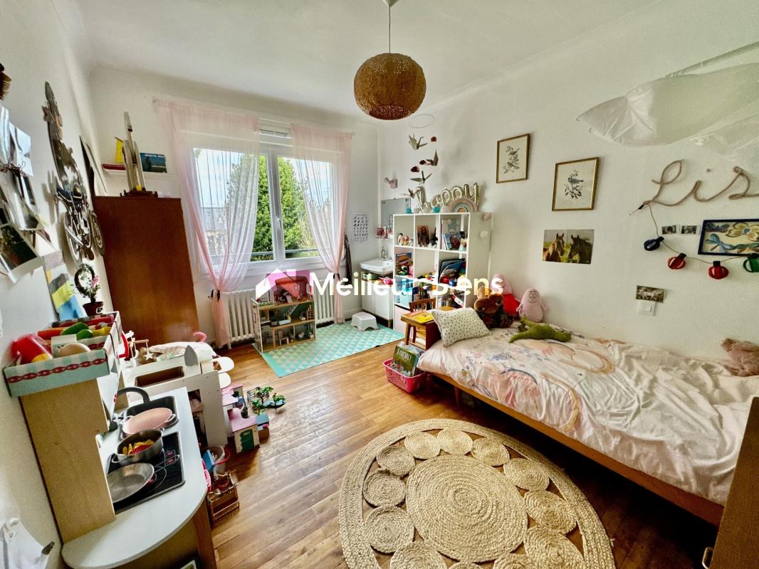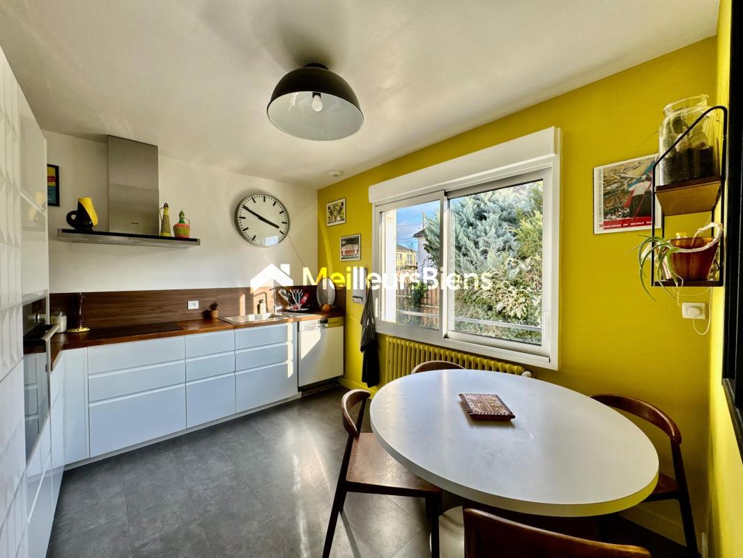 LAVAL - Proximité de la Gare - Dans une impasse, pavillon sur sous-sol comprenant: Entrée/dégagement avec placard, cuisine aménagée/équipée ( 9,30m2), salon/séjour de 37m2 avec cheminée insert et accès à la terrasse, 3 chambres avec placards ( 11 m2, 12m2 et 14m2 ) dont une avec dressing, salle d'eau et wc indépendant.