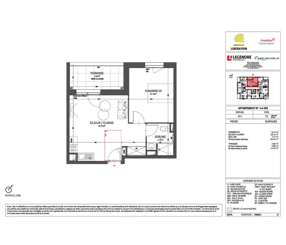 C'est un appartement de type T2 (F2 / 2 pièces / 1 chambre), d'une surface habitable totale de 40.46 m²