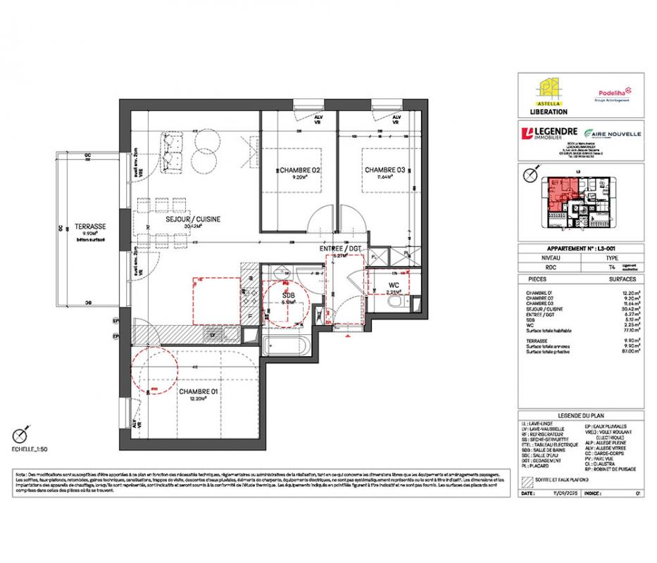 C'est un appartement de type T4 (F4 / 4 pièces / 3 chambres), d'une surface habitable totale de 77.10 m²